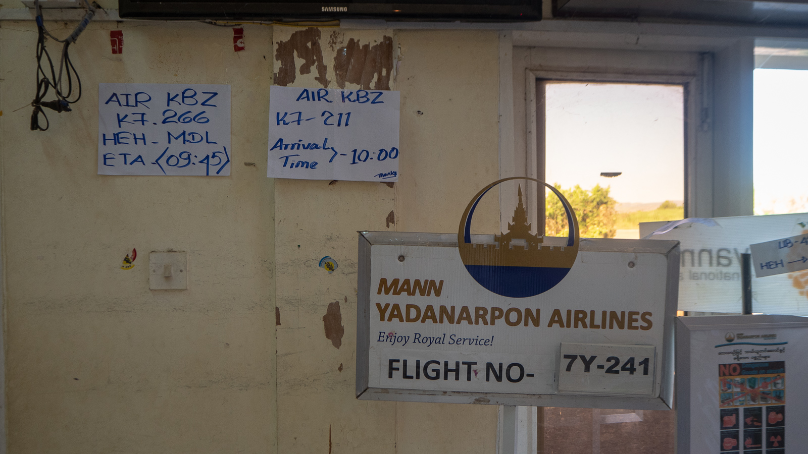 Lennot Bangkokista Mandalayhin jaYangonista Bangkokiin olivat Bangkok Airlinesin ja ne lensivät ajallaan ja lennoilla jopa tarjoiltiin ateriat, vaikka ne kestivät vain muutaman tunnin.
