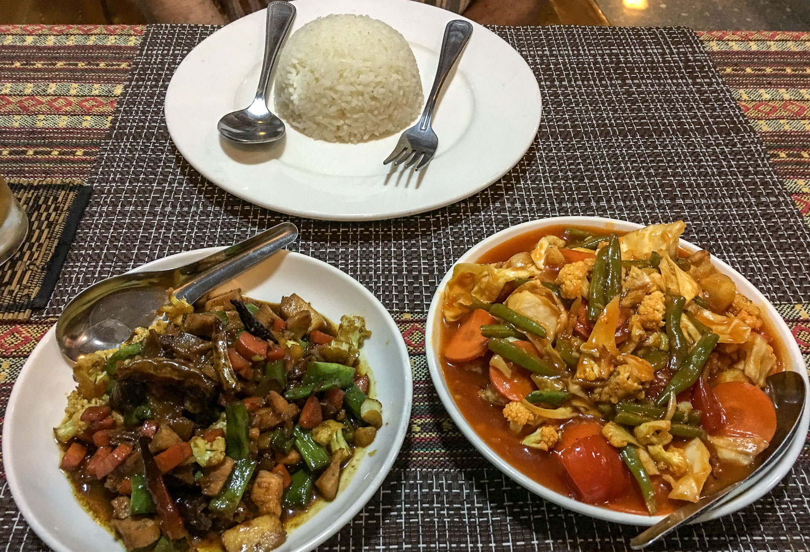 Ma Ma Guesthousessa asuminen oli uhrauksemme pienille paikallisomisteisille hotelleille. Toki siellä pari yötä asui, mutta ehkä emme haluaisi sinne toiste. Vaikka siksi, että hotellin sijainti olisi illalla vaatinut taskulampun kanssa pari korttelin väliä pimeässä lähimpään muuhun ravintolaan – päädyimme syömään hotellilla.