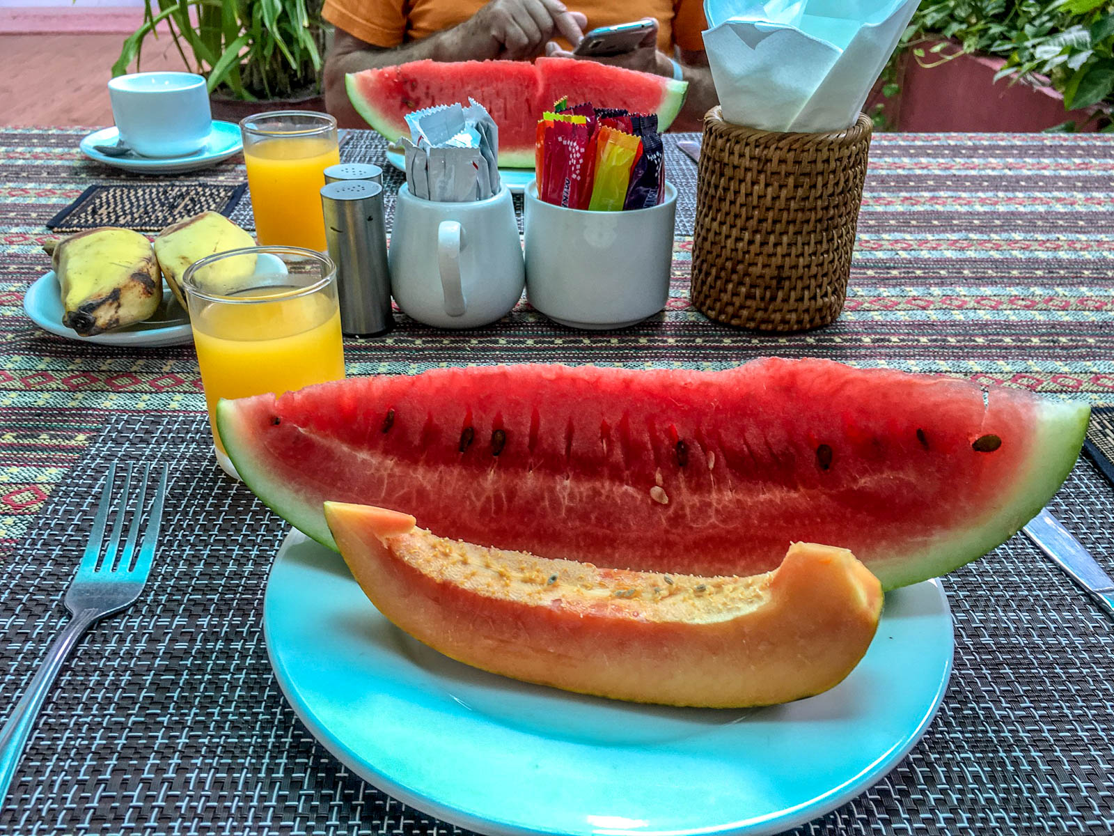 Aamiaiset kuuluivat huoneiden hintaan ja lounaasta/illallisesta maksoimme Myanmarissa ehkä keskimäärin 6-7 euroa per nuppi, juomineen.