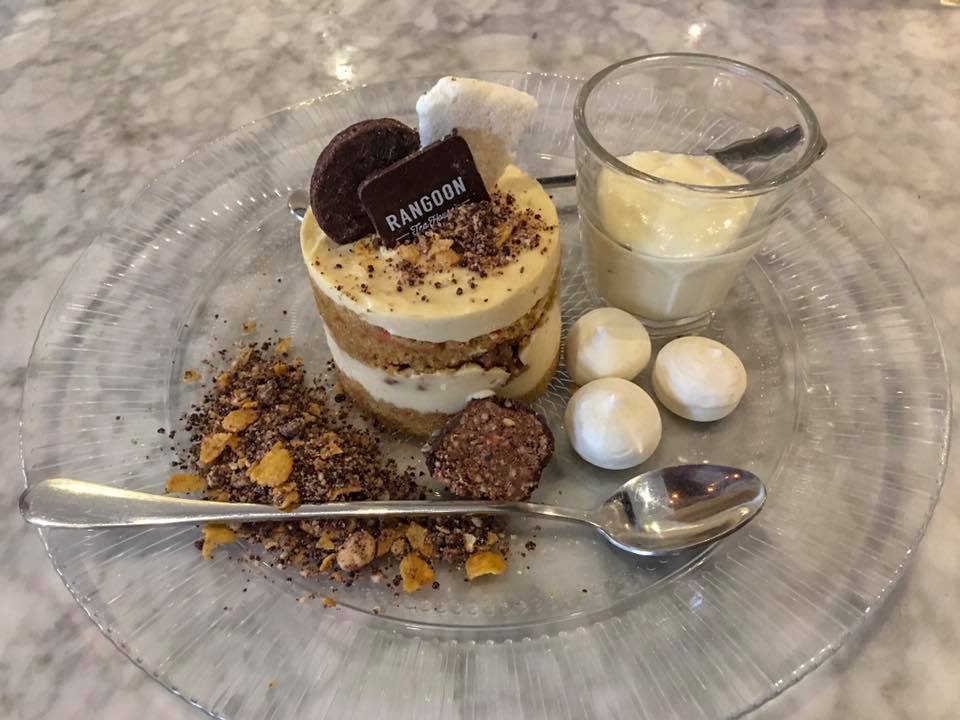 Päätämme Yangonin – ja koko Myanmarin vierailumme – siirtomaakortteleissa sijaitsevaan, historian havinaa ilmentävään teehuoneeseen, jonka asiakaskunta on länsimaista. Näillä hinnoilla ja ehkä osittain myös tällä menulla, paikka ei taida koskaan nousta paikallista suosioon, mutta tuskin se sitä tavoitteleekaan.