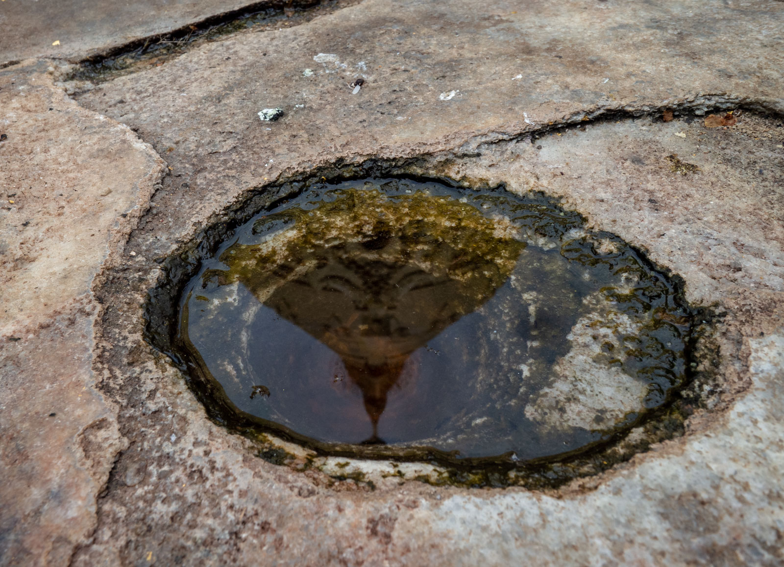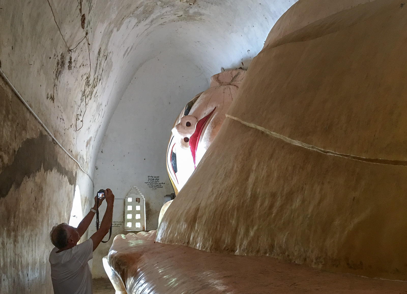 Tarinan pienestä vesilammikosta, johon pagodan kuva heijastuu kerroinkin jo matkan varrella kirjoittamassani Kuvia Myanmarista -jutussa. Oppaamme on meitä paljon taitavampi kuvatessaan pagodan heijastumaa veden pinnasta, mutta hän onkin tainnut tehdä sen jo satoja kertoja.