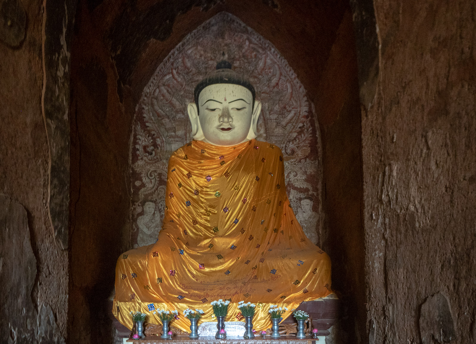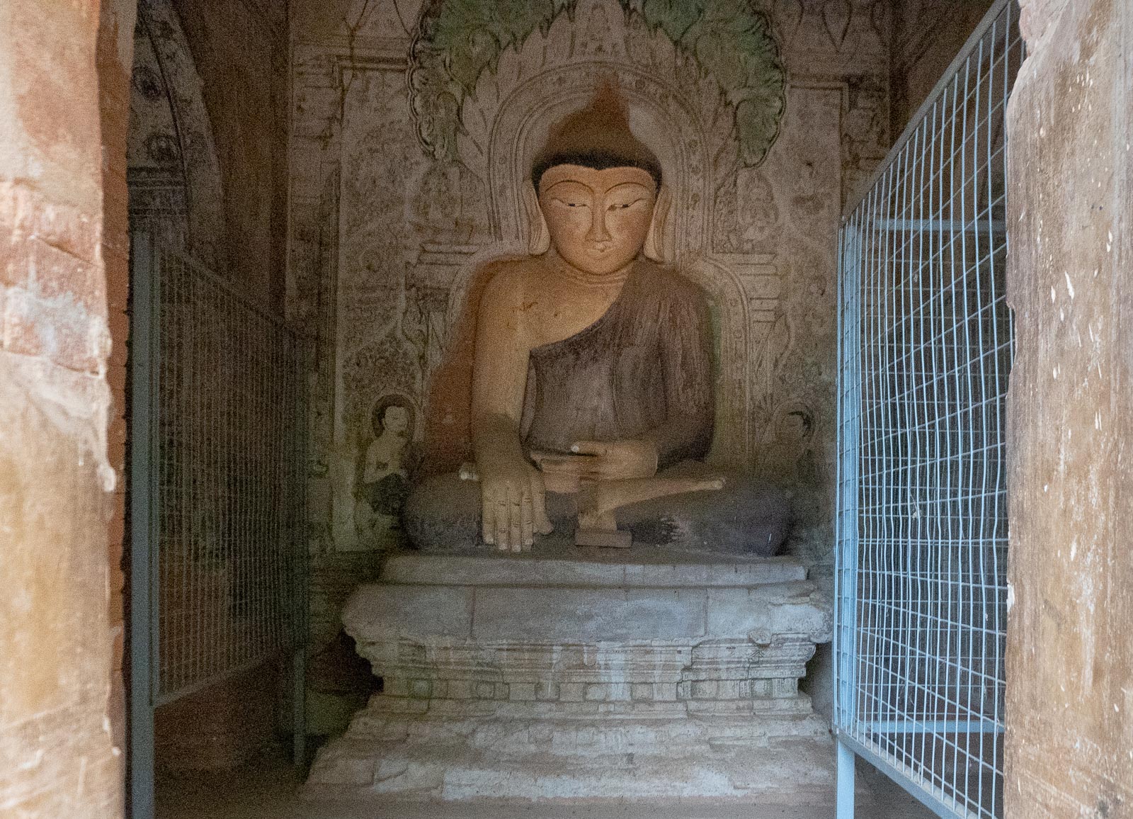 Seuraavana päivänä aloitamme pienten punaisten pagodien alueelta. Täällä luonto on vallannut jos ei ihan pagodeja ja temppeleitä, niin ainakin niiden välit. Buddhat eivät ole kultaisia, mutta kuitenkin säilyneet useimmissa pienissä temppeleissä. Ja vaikka temppeleille kiipeäminen onkin nykyisin Baganissa kielletty, niin näille pienille temppeleille kiipeilyä ei oppaammekaan tunnu paheksuvan.