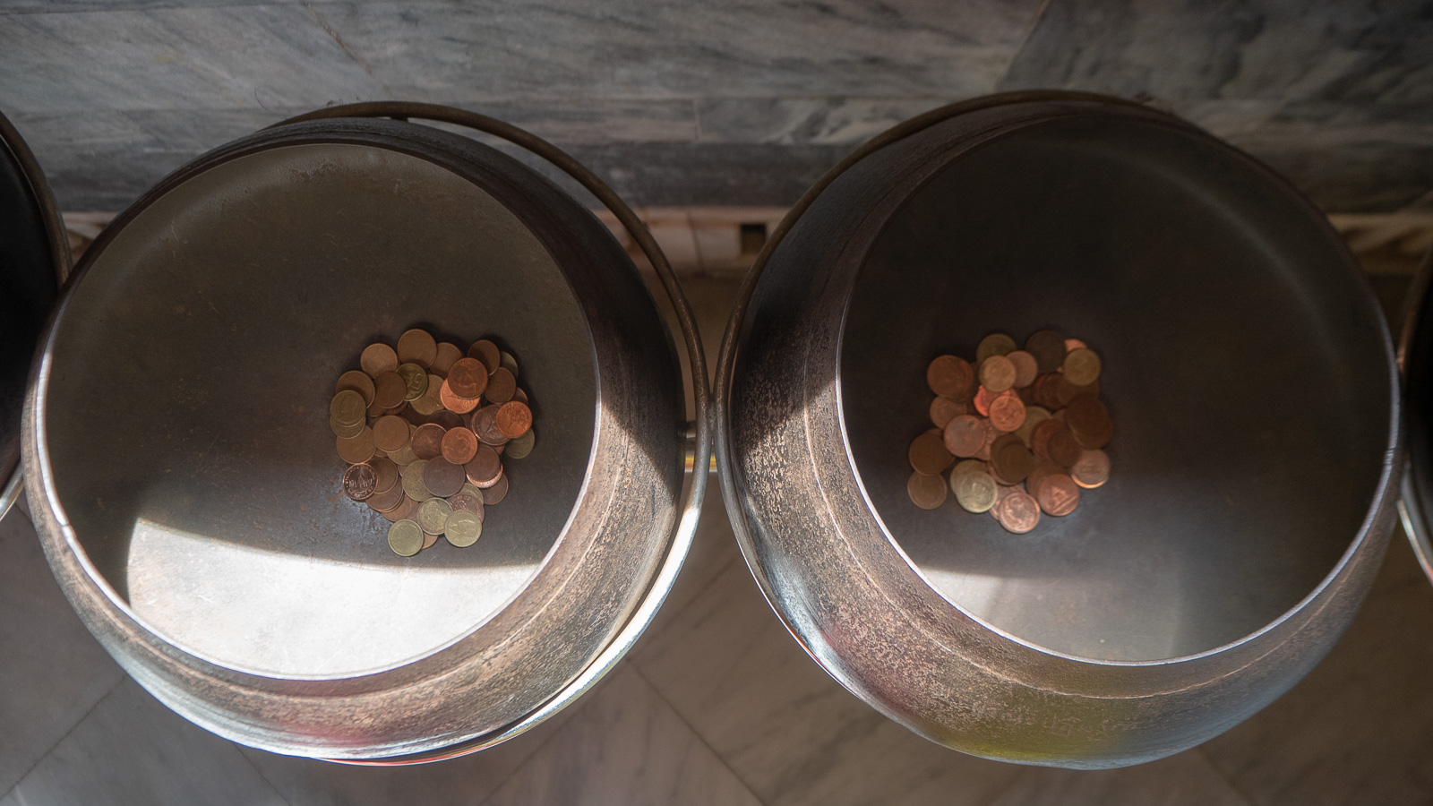 Rahankeruu temppelissä oli toteutettu mielenkiintoisen monimutkaisesti. Voit ostaa, setelillä, pussillisen kolikkoja ja tiputella niitä temppelin reunalla oleviin astioihin. Päivän päätteeksi kolikot varmaan pussitetaan uudelleen ja seuraavana päivänä taas kävijät ripottelevat ne samoihin astioihin!