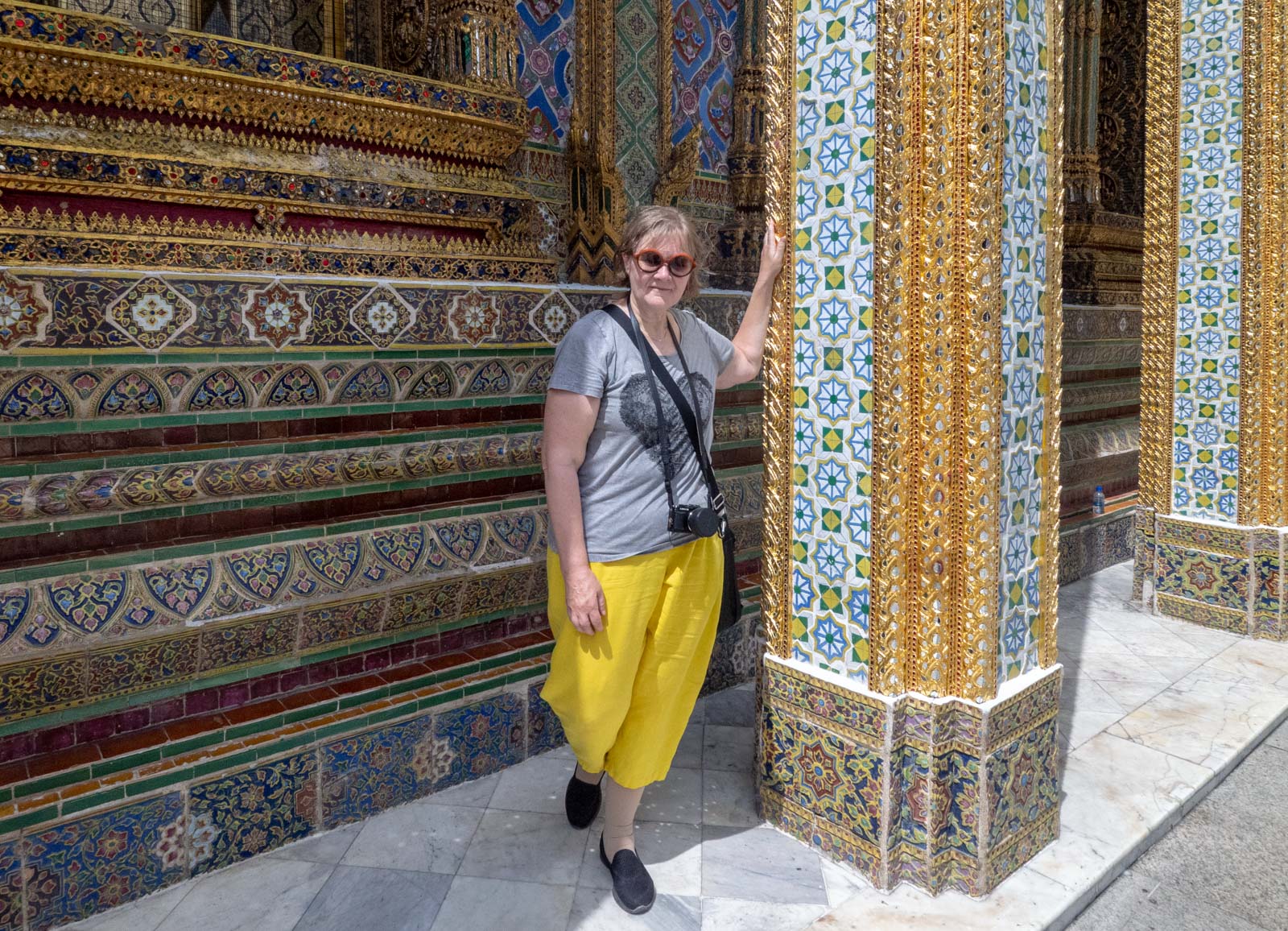 Kullalla, mosaiikeilla ja kaiverruksilla koristeltu temppelialue oli selvästikin selfieiden ja muiden “minä olen nyt täällä” kuvien ottajien suosiossa, jopa lähes aggressiivisten sellaisten. Kuva-alueelle mahdollisesti häiritsevästi tulevia muita turisteja hätisteltiin tarvittaessa sivummalle! Ehkä maailman pitäisi vähitellen siirtyä nähtävyyksien kuvaamisessa kuvaamaan todellisuutta, eli antaa kaikkien ihmisten vaan olla mukana niissä kuvissa. Satunnainen tyhjä kohta temppelin jollain kulmalla on kuitenkin nykyisin harhaa, ei todellisuutta.