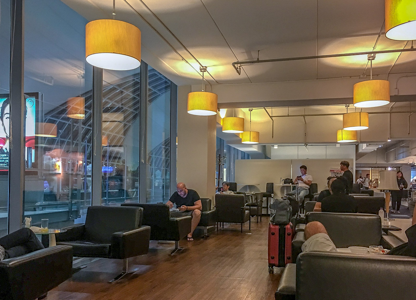 Businessluokan lippuun, myös turistiluokan lipusta sinne korotettuun, kuuluu pääsy loungeen, mutta Miracle Business Class Lounge (D-terminaalissa) ei vakuuttanut millään saralla, eli sille ei juuri arvoa kannata laskea kohtuullisen tuolin ja rauhallisen ilmapiirin lisäksi. Tarjoilu oli vaatimatonta ja lounge sijaitsi isolla kentällä pitkän kävelymatkan päässä. Mutta tietysti, onhan kävelylenkki aina paikallaan ennen pitkää lentoa …