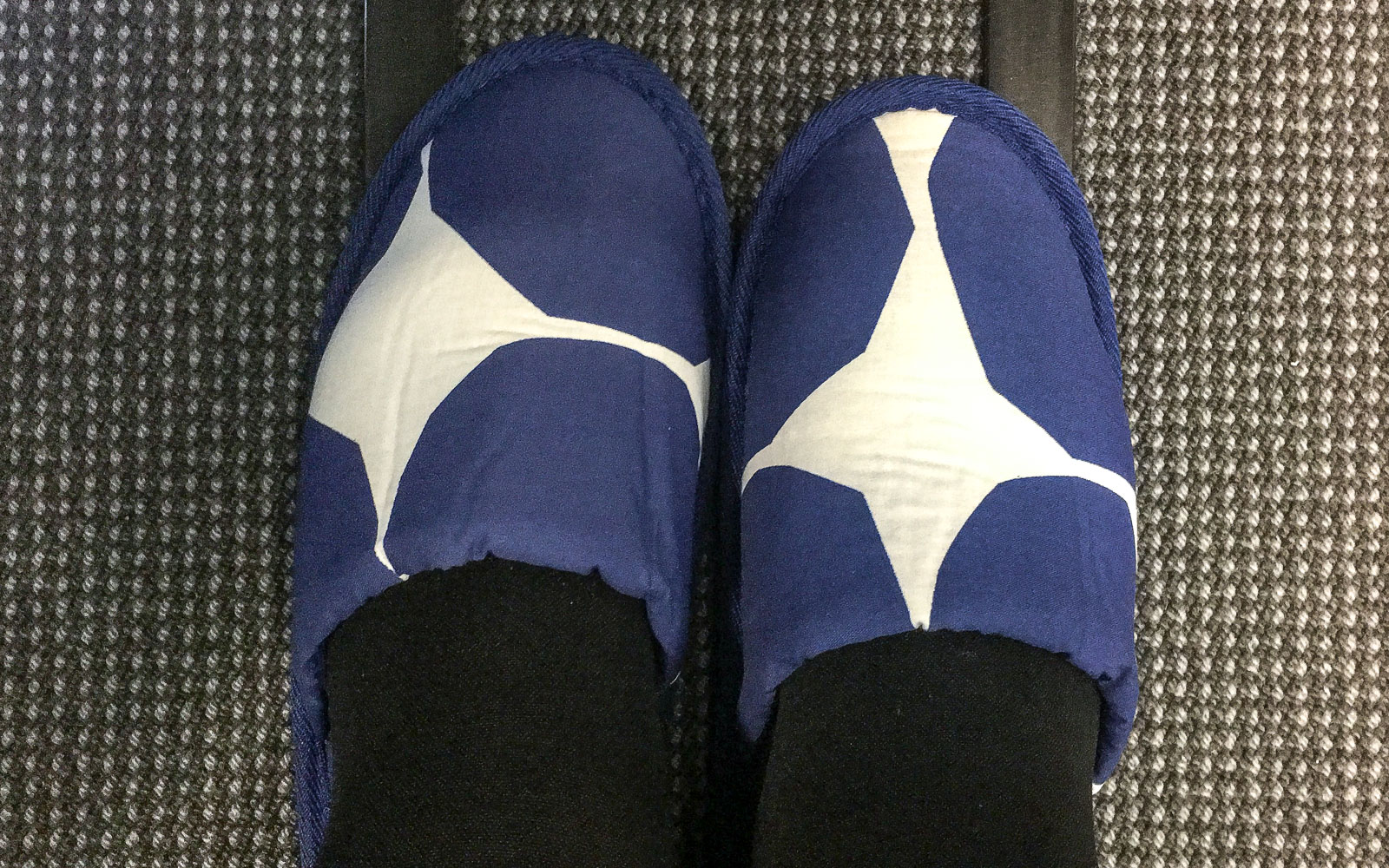 En ole koskaan lentänyt business-luokassa, tosin lennotkin ovat pääosin olleet Euroopassa. Mutta kerran sain mieheltä oikein Marimekko-kuosiset tossut “tuliaisiksi”, kun hän oli ne saanut business-luokasta :)