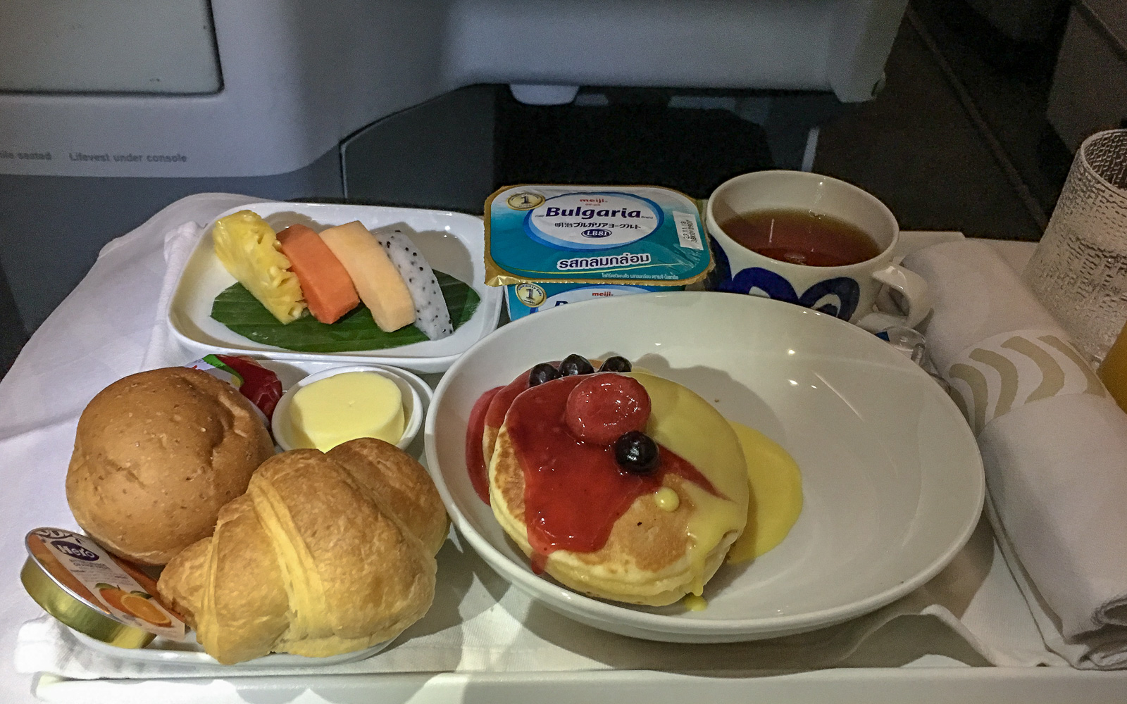 Nuo pannukakut näyttivät kyllä hyviltä! Ei ole vielä sellaisia osunut kertaakaan kohdalle lennolla :). Businessluokassa parasta on tosiaan oman tilan ja rauhan lisäksi palvelu, koska itse ainakin arvotan hyvän asiakaspalvelun todella korkealle ihan kaikkialla, olipa kyse lennosta, hotellista tai kaupasta.