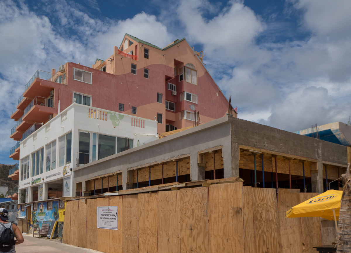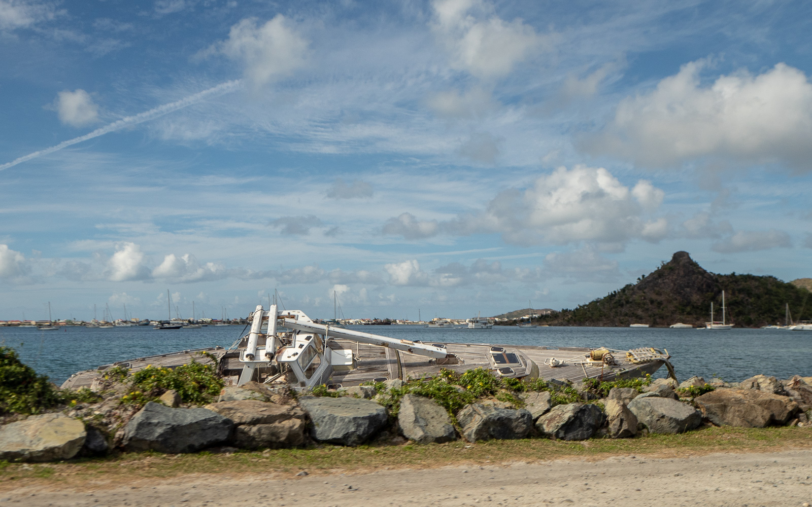 Matkalla Marigotiin näimme rannalle paiskoutuneita purjeveneitä ja kaupunkia lähestyessämme raunioituneita kauppoja ja ravintoloita. Ihan keskusta oli kuitenkin jo maaliskuussa pääosin kunnossa.
