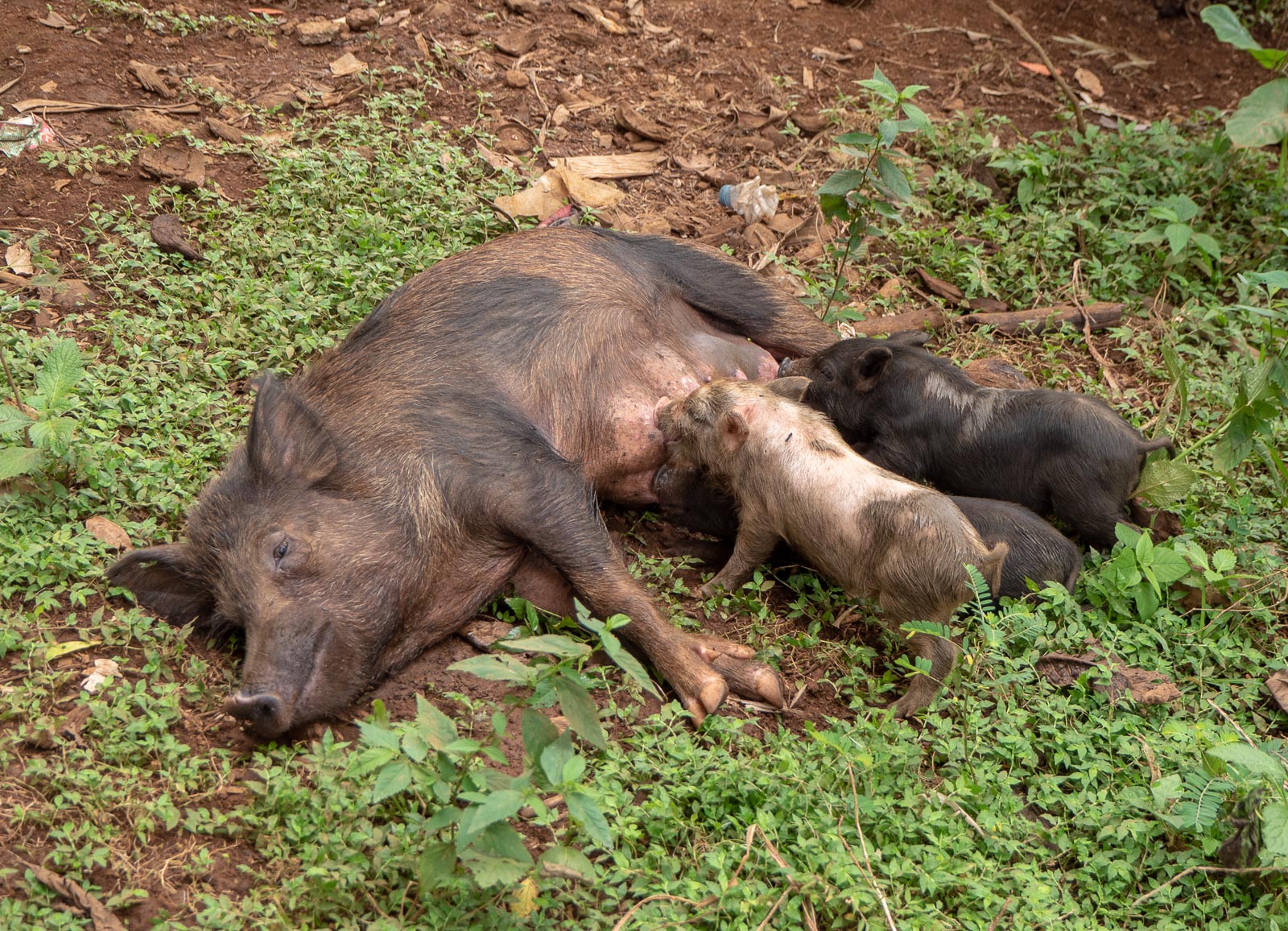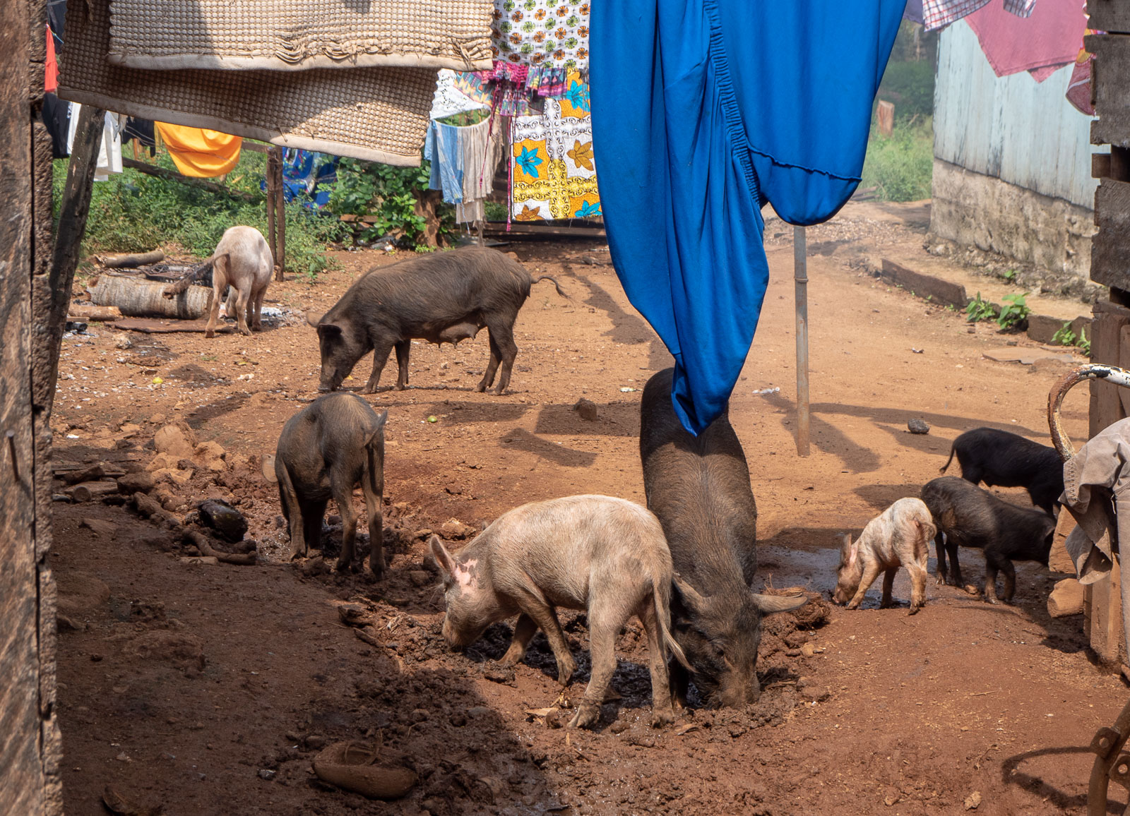 Ja lukuisia vuohia, sikoja ja lehmiä, niin tiellä kuin tien varrella.
