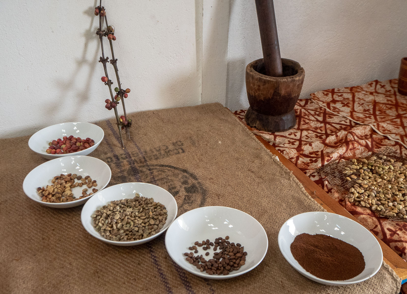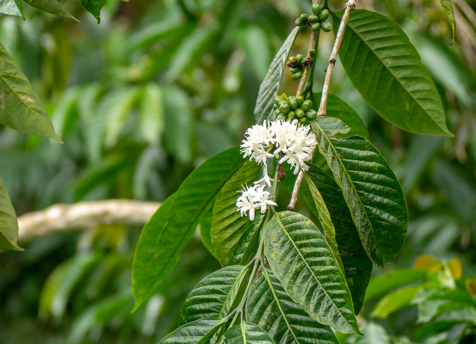 Matkalla vuorelle saatoimme myös pysähtyä katsomaan kahvipensaita ja opimme nopeasti erottamaan arabican ja ryppäissä kasvavan robustan. Kahvipensaita olemme viimeksi tainneet yrittää kuvata Keniassa Karen Blixenin talolla Nairobissa, mutta siellä niitä oli enää vaan muutama koristeeksi.