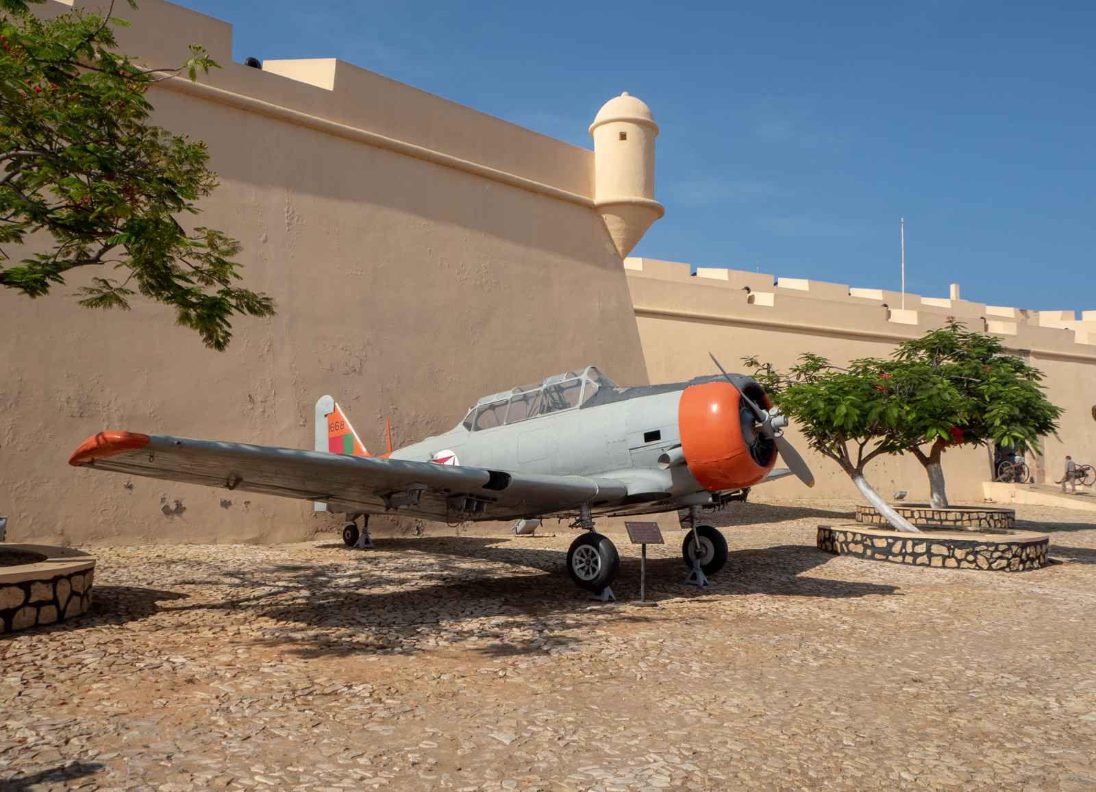 Linnoituksen museo-osuus käsitti nopeasti vilkaisten muutamia patsaita, vanhoja lentokoneita ja panssariajoneuvoja, mutta vaikka sotahistoria ei kiinnostaisi pätkääkään, niin linnoituksella kannattaa käydä, sillä näkymät sieltä niin Luandan rantabulevardille kuin merelle tai toiseen suuntaan slummimaiselle asuinalueelle ovat joka suuntaan huikeat.