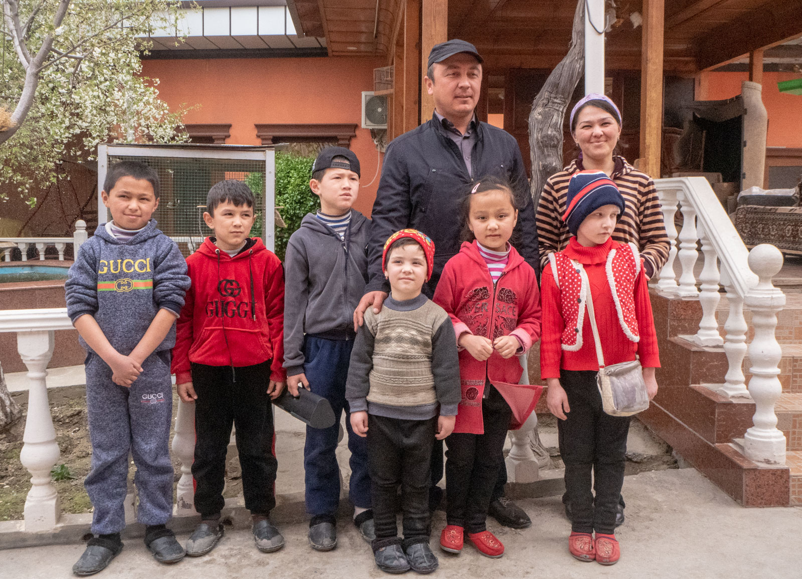 Perheen, tai täkäläisen perhekäsityksen mukaisesti, tietysti suvun, lapset ovat innoissaan ja esittelevät mielellään meille kotipihaansa. Isovanhemmat eivät ehkä niinkään, mutta arvostamme sitä, että kuljettajamme kaikesta huolimatta halusi avata kotinsa meille.