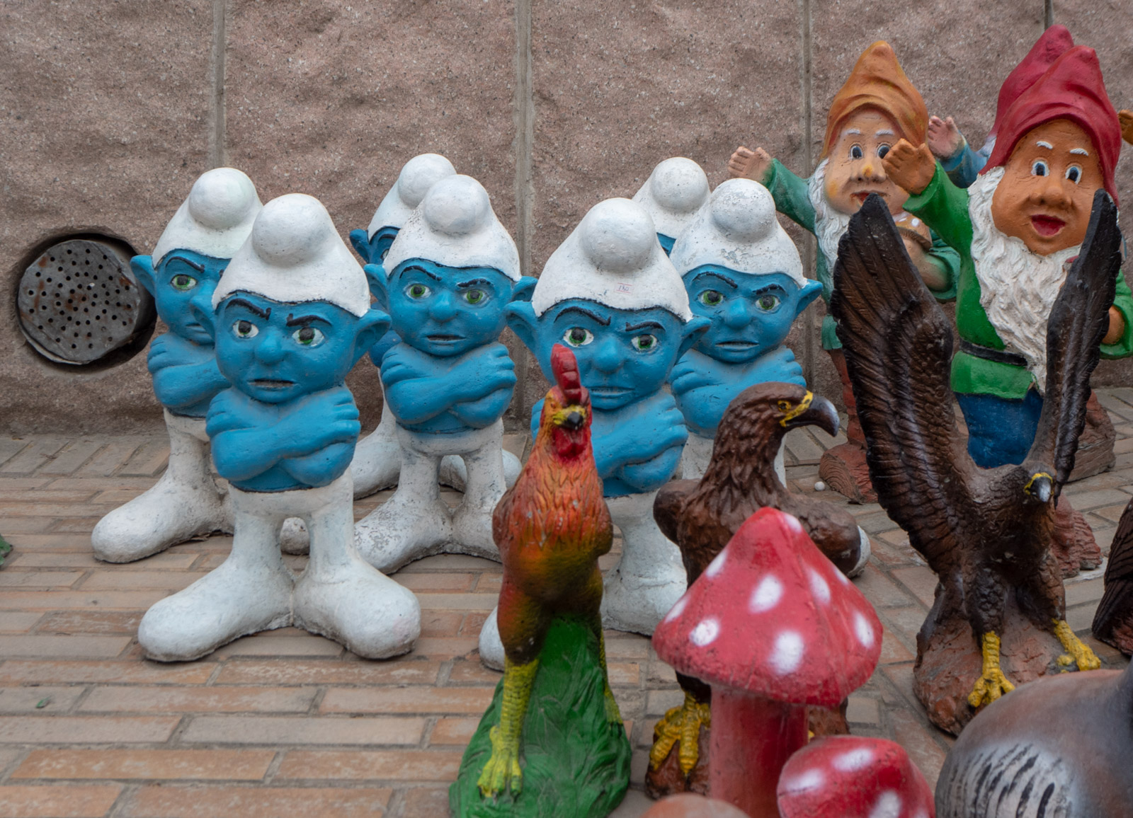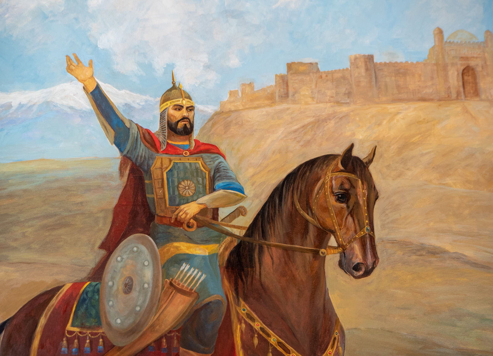 Linnoituksen sisäänkäyntiä vartioivat sotilaspatsaat, jotka tuovat mieleen Tsingis-kaanin Mongolian aavikolla, jonne ollaan kokoamassa uutta Tsingis-kaanin armeijaa patsas kerrallaan. Satunnainen ohikulkija olisi saanut kasvonsa Tsingis-kaanin sotilaaseen sopivalla summalla rahaa. Ehkä se onnistuisi täälläkin?
