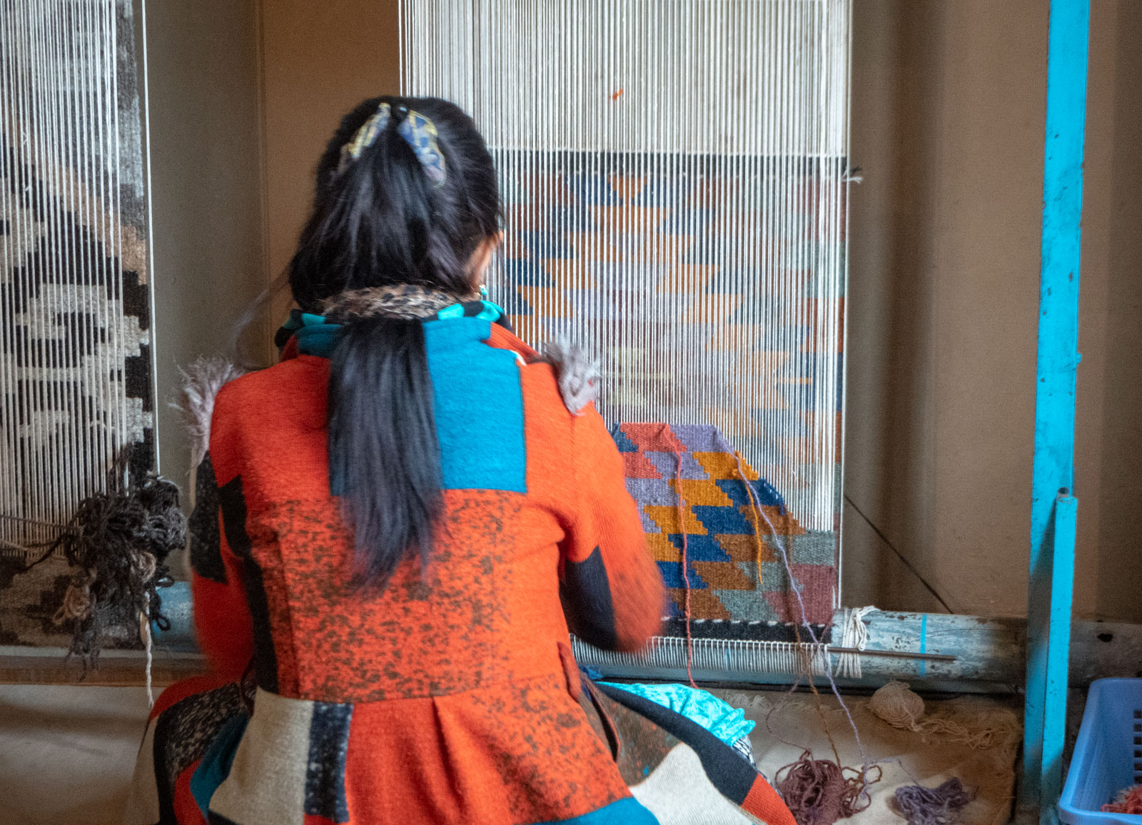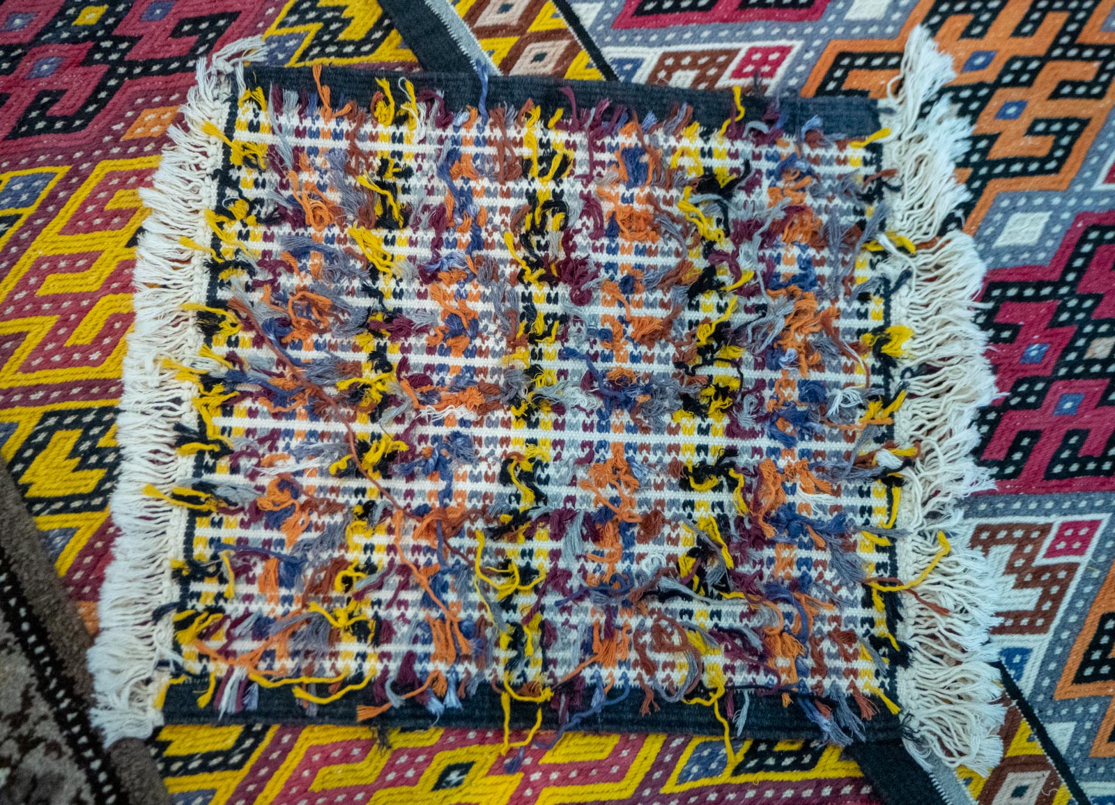 Matkan varrella pistäydyimme myös vierailulla uzbekistanilaisessa perheessä, joka tarjosi meille teetä – vastineeksi siitä, että kohteliaasti katsoimme läpi heillä myynnissä olevan pienen mattovalikoiman. Mattokauppoja ei syntynyt, mutta pääsimme kuitenkin näkemään hiukan arkea Uzbekistanin maaseudullakin.