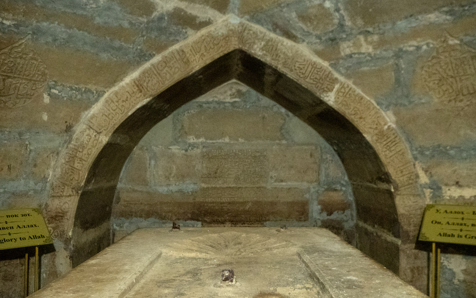 Lopuksi kävimme katsomassa vielä Amir Timurin kryptan. Kryptassa oleva hauta jäi kuitenkin tyhjäksi, sillä hänet haudattiin lopulta Samarkandiin, ei syntymäkaupunkiinsa Shahrisabziin. Krypta kuulemma löytyi historiallisella aikajanalla melko äskettäin (1943), kun sen katto romahti lasten pelatessa jalkapalloa sen päällä.