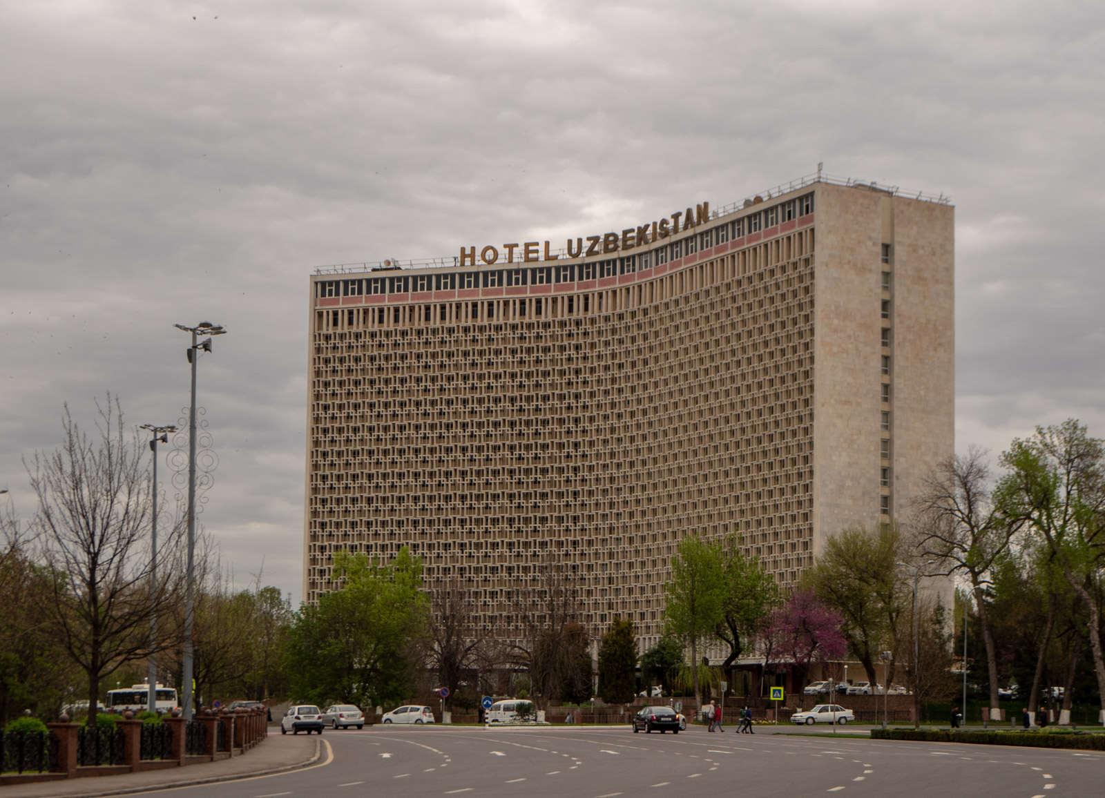 Tashkentissa majoituimme neuvostoajan lippulaivahotelliin, Hotel Uzbekistaniin. Ehkei hotellina kaikkein viehättävin, mutta yhden yön majoituksena oli kiva kokea tuon hotellin mahtipontisuus ja illan pienimuotoinen valoshow sen julkisivussa. Sen sijaintikaan ei ollut hassumpi ja hotellin aulassa oli paitsi pieni kahvila myös esimerkiksi tiski, jolta saattoi helposti ostaa paikallisen SIM-kortin.