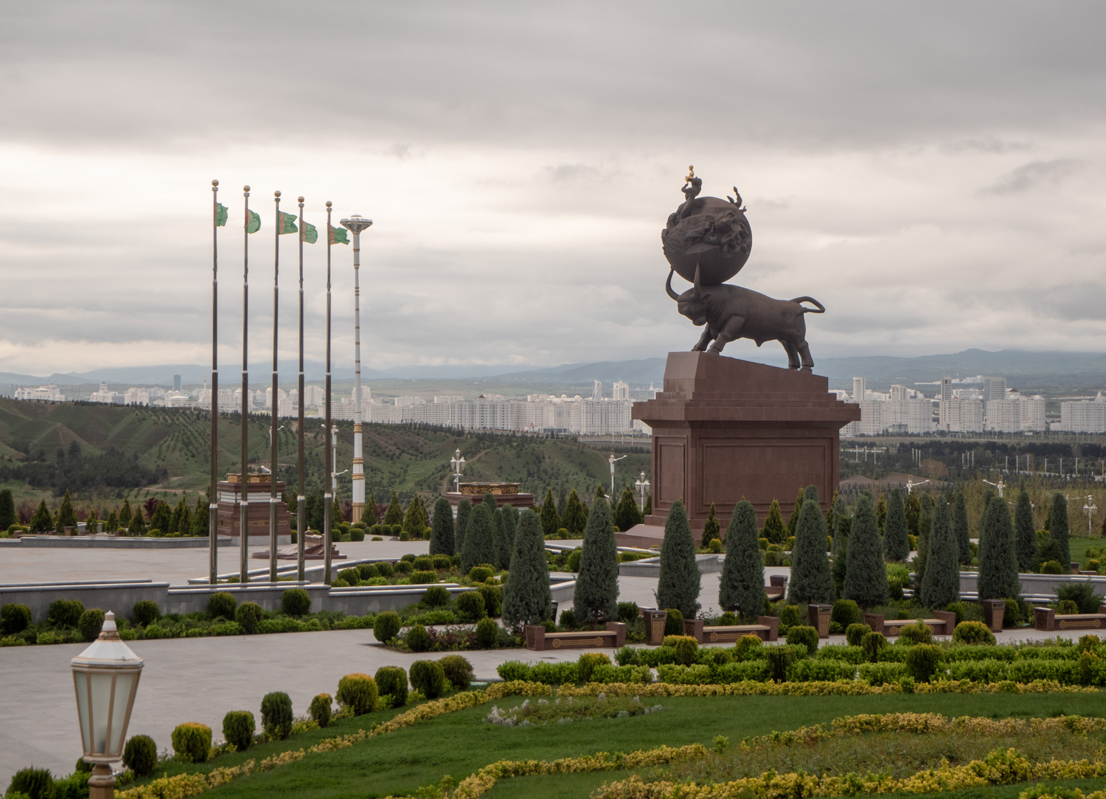 Maanjäristyksen muistomerkki on mahtipontinen, kuten kaikki Ashgabatissa.