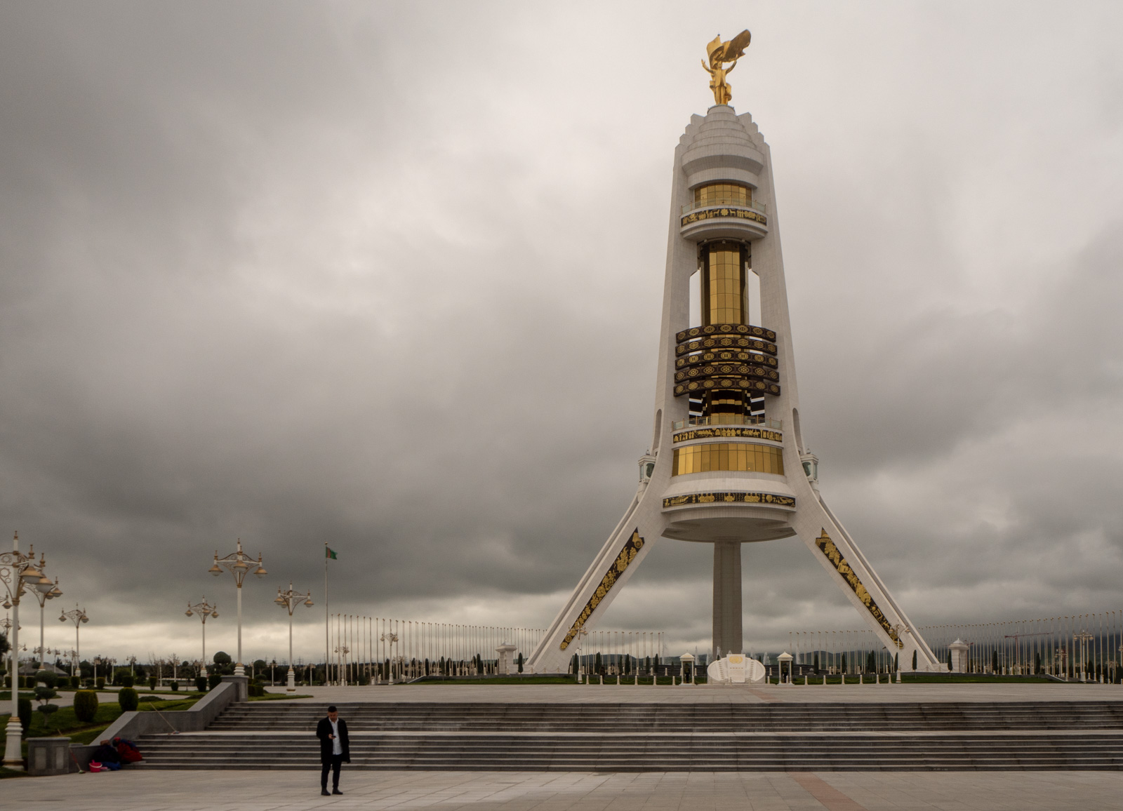 Turkmenistan ylpeilee puolueettomuudellaan, jonka myös YK on tunnustanut vuonna 1995. Tämäkin on hyvä syy rakentaa Ashgabatiin muistomerkki, jota mekin tietysti kävimme ihmettelemässä.