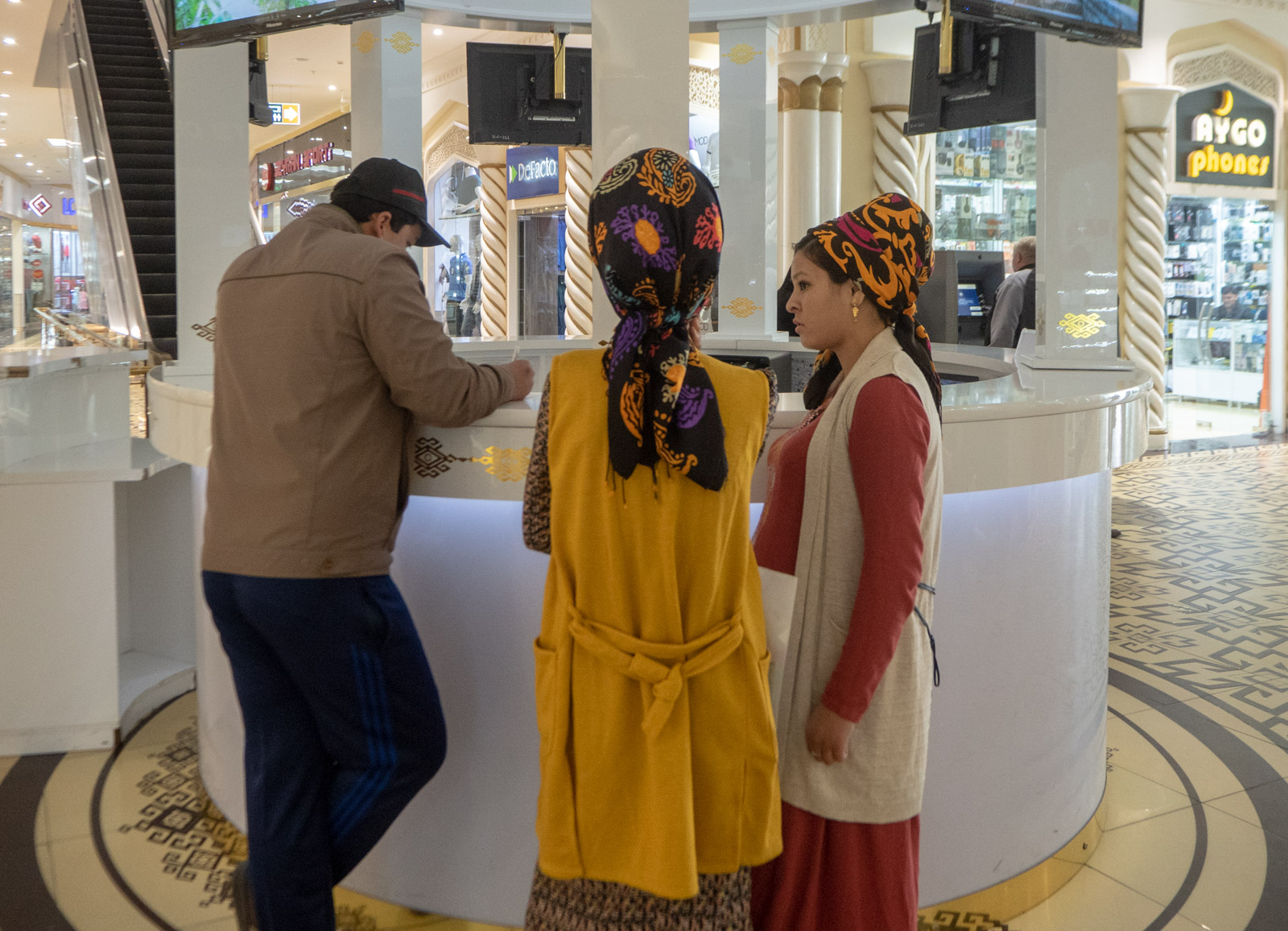 Mutta ehkä oudointa on sittenkin se, että ihmisiä Ashgabatissa ei ole. Ei ainakaan ulkona, ei ainakaan maaliskuun lopulla, arkipäivinä. Haastoimme opastamme aiheesta useampaan otteeseen, siinä määrin, että hän selvästikin alkoi jo hermostua, ja saimme vain selityksenä, että ihmiset ovat töissä tai kotona lasten kanssa. Hyvällä säällä (mitä maaliskuiset vasta n. 15 asteen lämpötilat eivät selvästikään turkmenistanilaisille edustaneet) perheet kuulemma viettävät aikaa hyvin hoidetuissa puistoissa. Katukahvilakulttuuria täällä ei selvästikään ole: talvisin on liian kylmä ja kesäisin liian kuuma.
