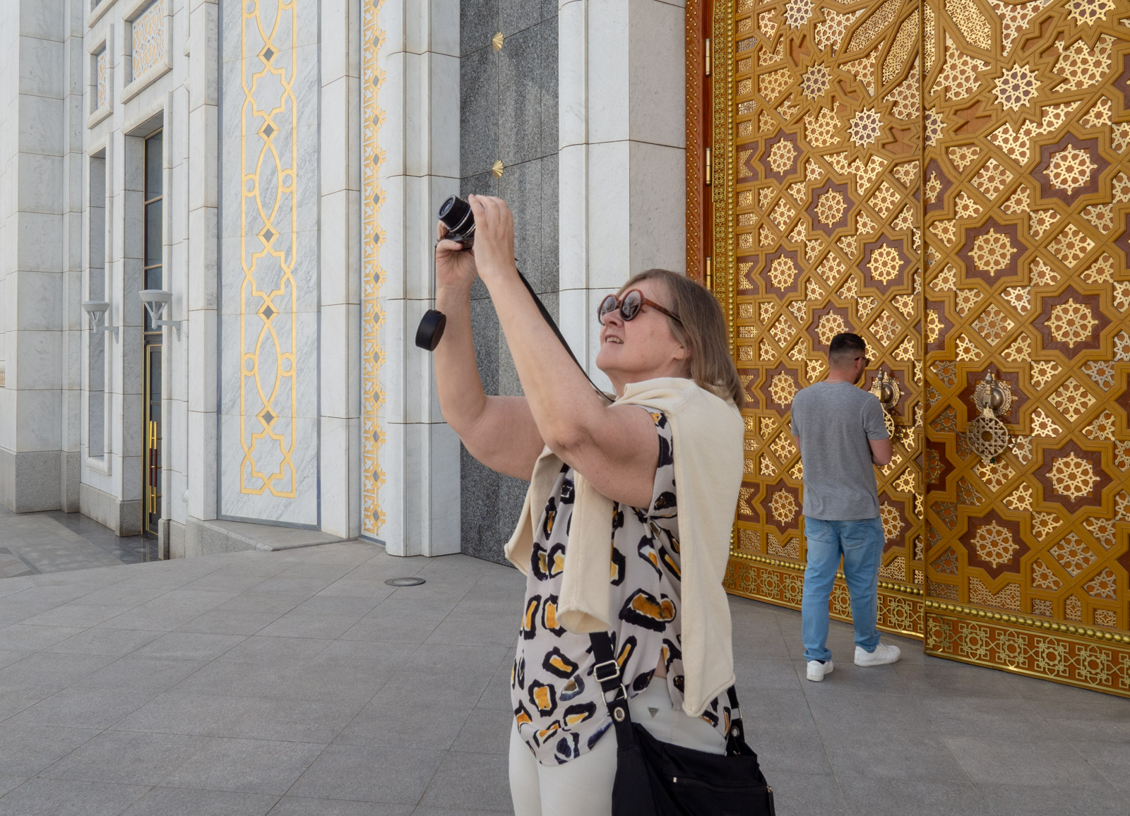 Valkoinen kaupunki näyttäytyi meille hajanaisena kokoelmana monumentteja, moskeijoita, museoita, markkinoita, ostoskeskuksia, pankkeja ja leveitä bulevardeja, sillä liikuimme paikasta toiseen autolla – Ashgabatissa ei kävellä.