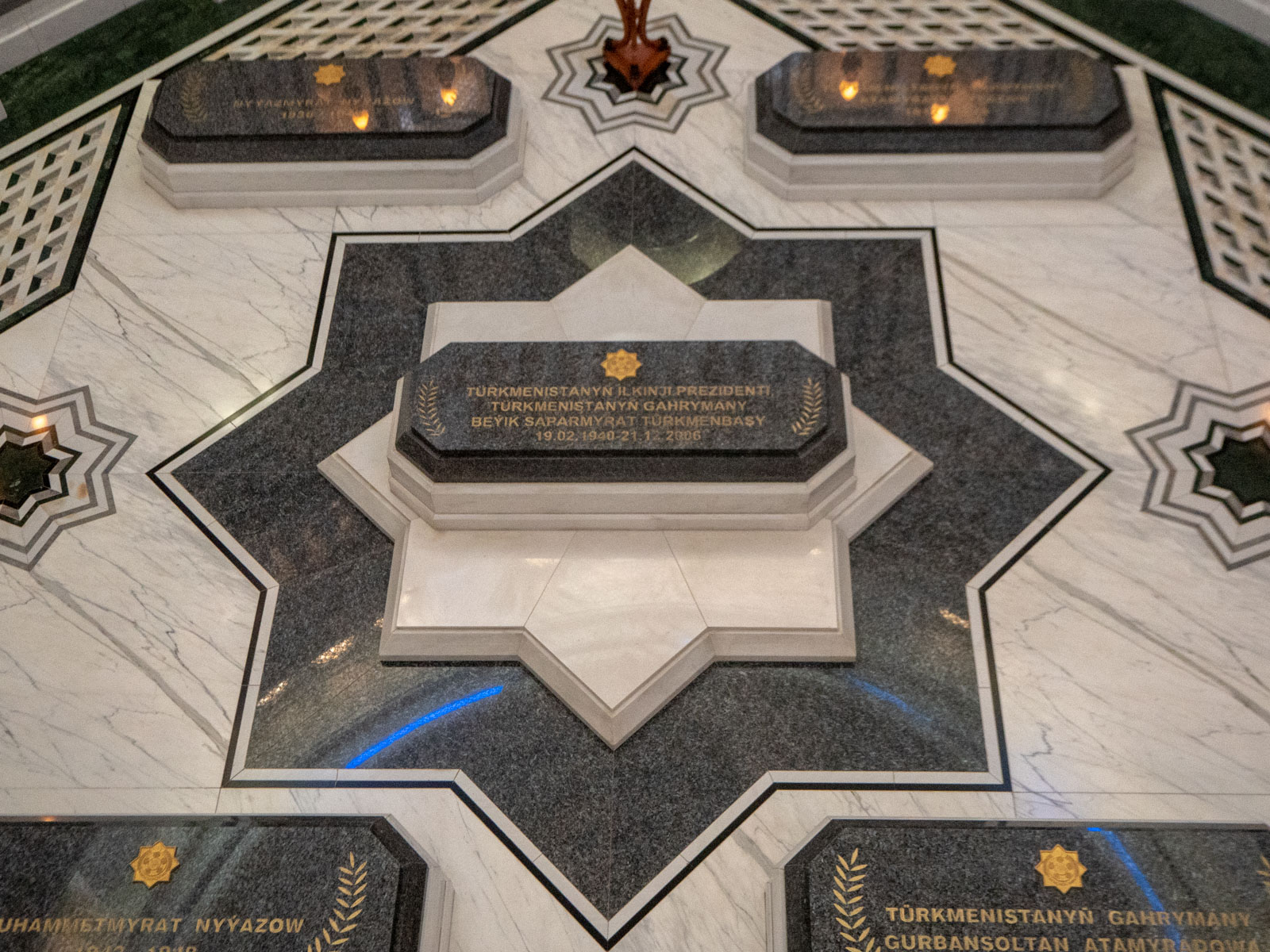 Moskeija on valtava, mutta islamilainen maailma ei taida sitä edes moskeijaksi tunnustaa, sillä moskeijan seiniä koristavat kirjoitukset ovat sekä koraanista että jo mainitusta Ruhnama-kirjasta, joka ei kuitenkaan muun maailman mielestä ole Koraanin veroinen kirja eikä sitä siis saisi Koraaniin rinnastaa.