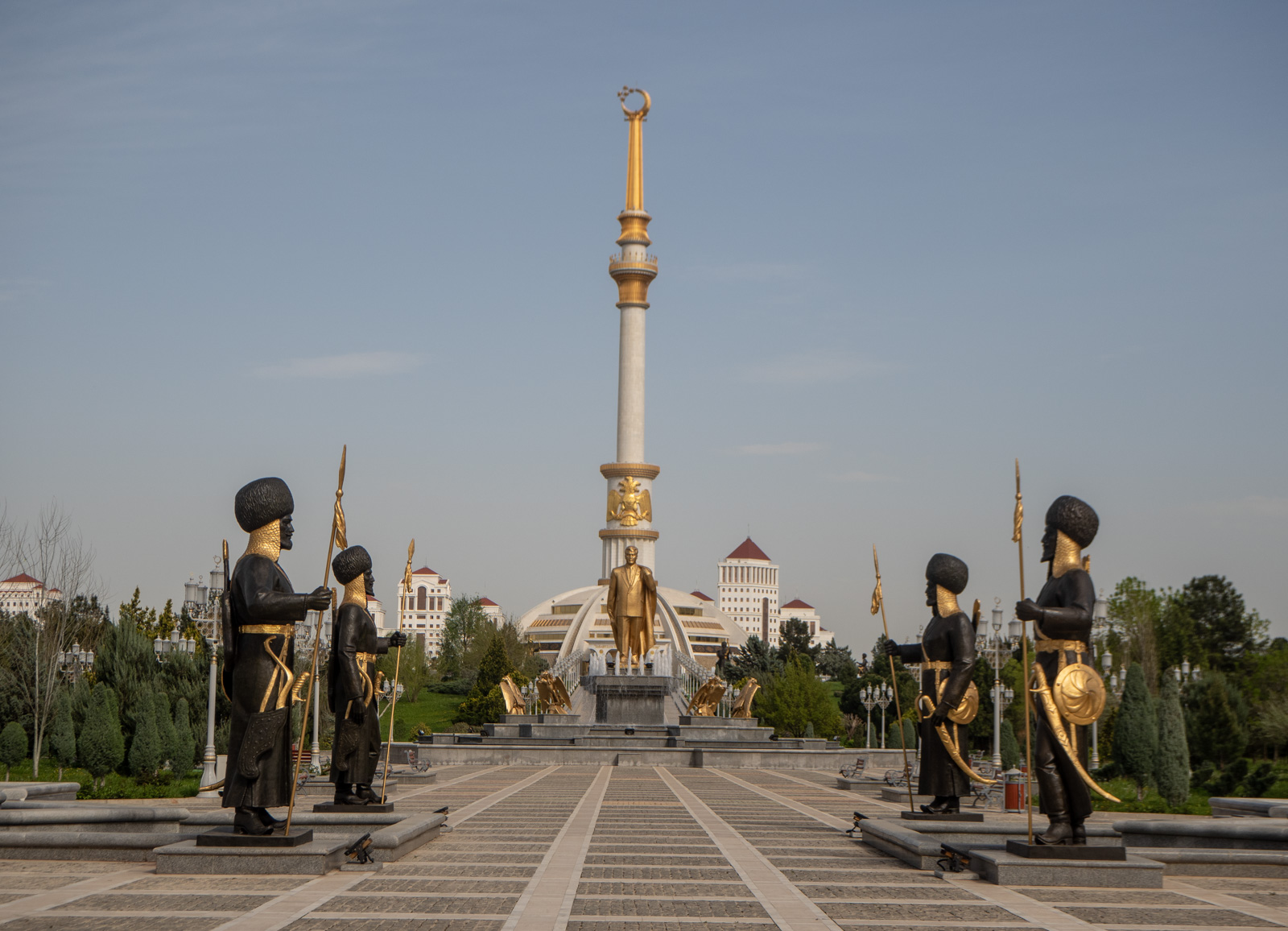 Turkmenistanin itsenäisyyden monumentti on ehkä vaikuttavin kaupungin lukuisista monumenteista. Kullattu pylväs on pylväs, mutta maan historiasta juontuvat patsaat sen edustalla! Paikalliset kuulemma kutsuvat muistomerkkiä ulkonäkönsä mukaan viemärinaukaisijaksi, mutta ehkä se on vähän tylyä …