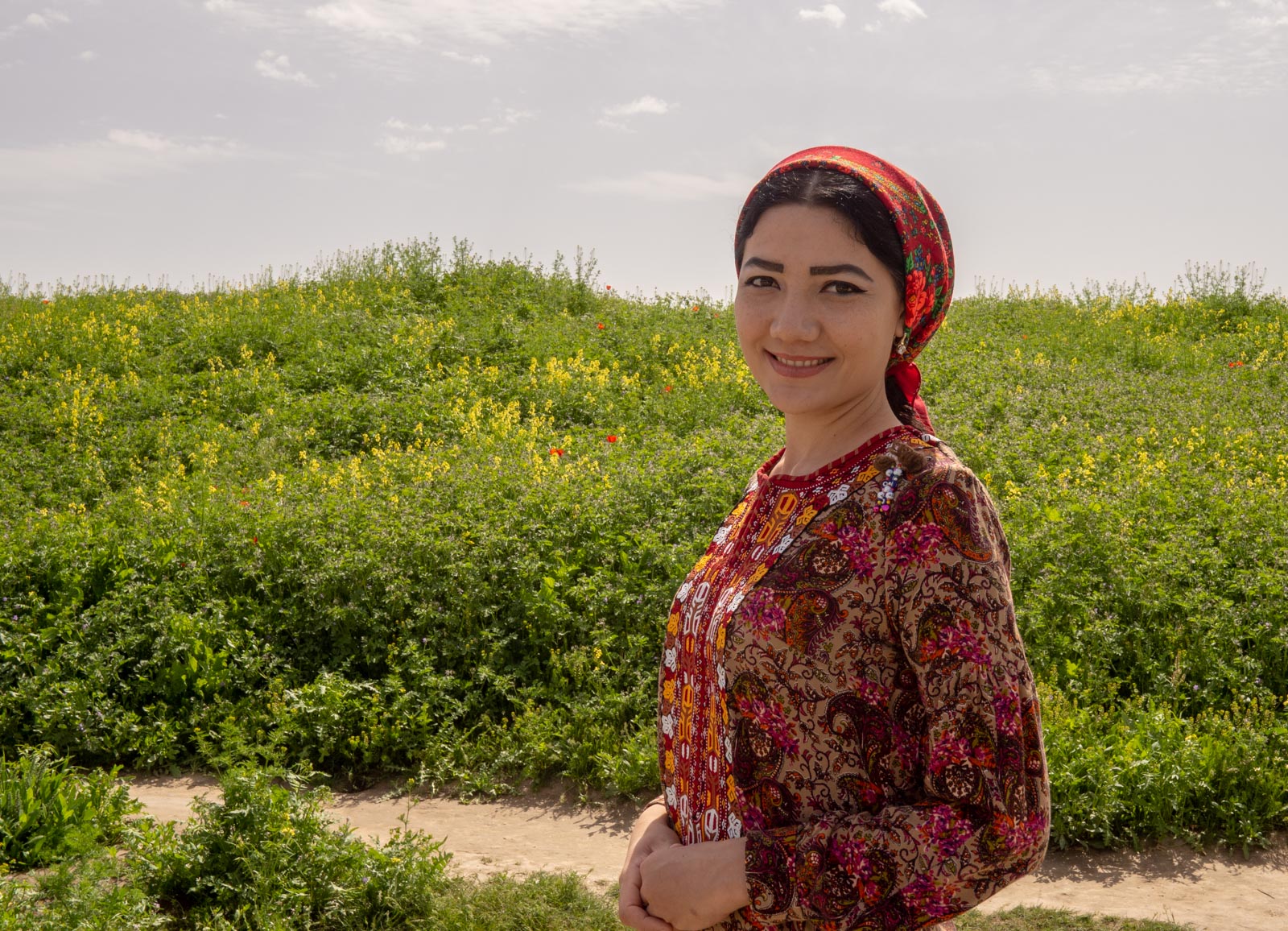 Olimme liikkeellä lounasaikaan ja paikalliset suvut olivat levittäytyneet piknikpöytien ääreen. Turkmenilainen vieraanvaraisuus on vielä ylitsevuotavaa meitä, muutamia harvoja, maassa käyviä turisteja kohtaan. Mekin, kymmenen hengen ryhmä, olisi ollut tervetullut jakamaan pöydän antimia heidän kanssaan, mutta kieltäydyimme kuitenkin kohteliaasti, lähinnä nyt siksi, että meille oli jo lounas varattuna.