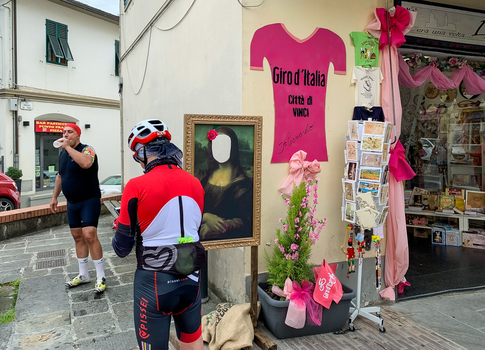 Vincin kiinnostavuutta pienen seurueemme miespuolisten jäsenten silmissä lisäsi vielä Giro d’Italia, jonka kolmannen etapin oli määrä lähteä kaupungista maanantaina 13. toukokuuta. Hyvä, ettemme jättäneet retkeä maanantaille, sillä silloin kaupunkiin ei olisi päässytkään autolla!