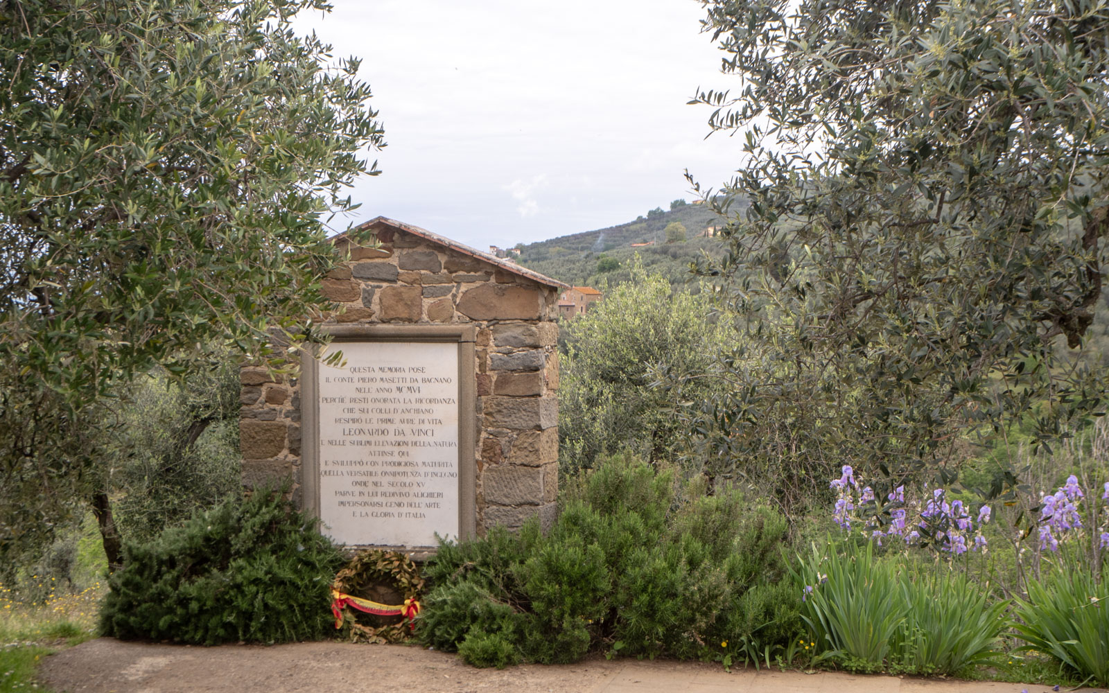 Pieni museo oli kuitenkin melko nopeasti katsottu, joten kävimme myös vilkaisemassa Leonardo da Vincin synnyinkotia muutaman kilometrin päässä Vincistä Anchianon kylässä. Tarkkaan ottaen museossakin olisi ollut ylhäällä mäellä toinenkin osa, mutta sen jätimme väliin. Meitä enemmän Leonardo da Vincin maisemista kiinnostuneet olisivat voineet myös kävellä museolta kotitalolle noin 3 kilometrin matkan. Museoesitteen sanoin: “tämä luonto ja nämä maisemat innoittivat myös nuorta Leonardoa”.