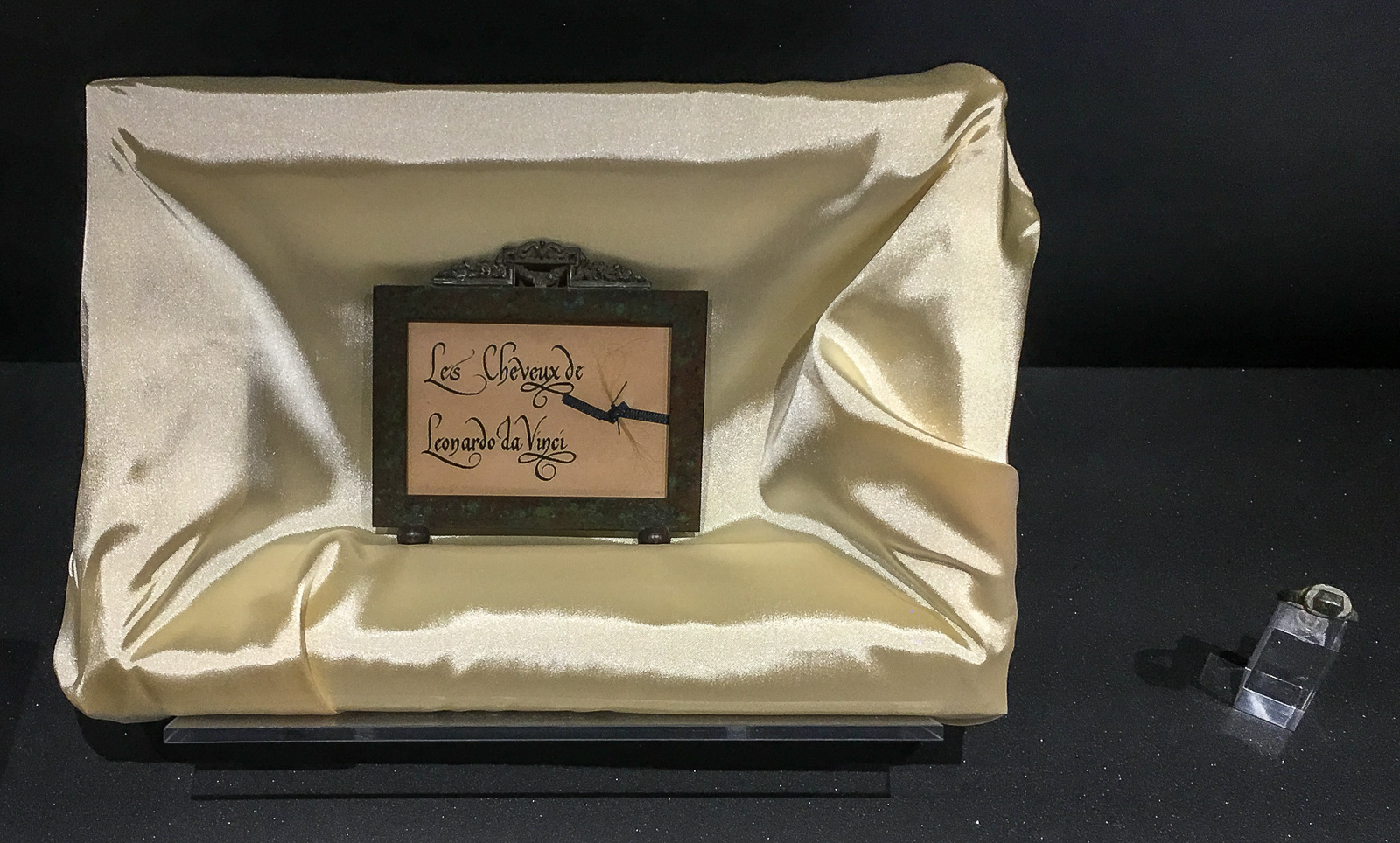 Amerikkalainen keräilijä osti vuonna 1925 Leonardo da Vincin hiuskiekuran ja sormuksen. Molemmat liittyvät kokoelmaan, joka aikoinaan kuului miehelle, jonka uskotaan löytäneen Leonardon jäännökset. Sittemmin löydökset siirtyivät toiselle amerikkalaiselle keräilijälle, joka otti yhteyttä Leonardon kotimuseoon Vincissä kuultuaan heidän selvittäneen Leonardin sukupuuta.