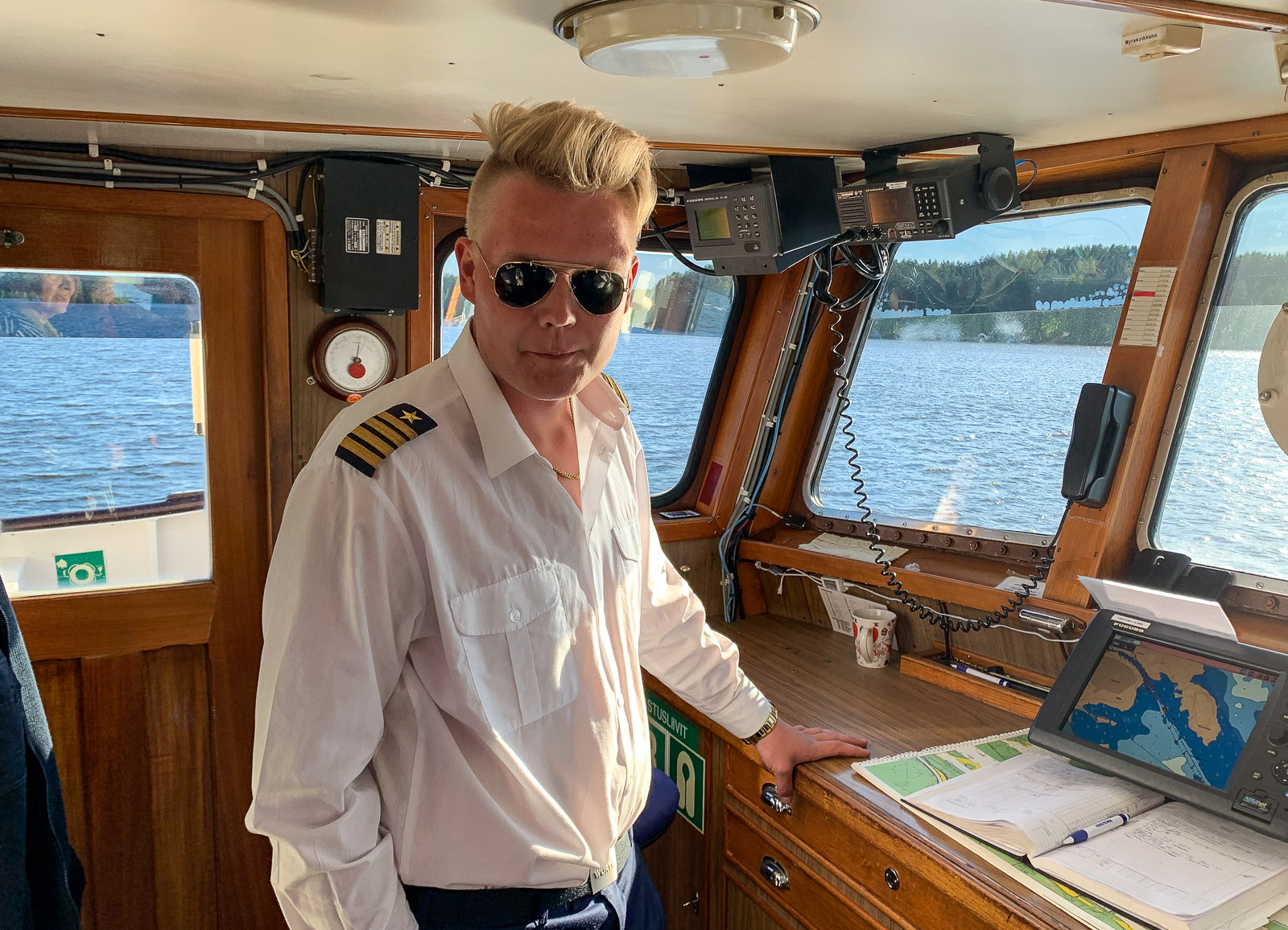 Saimme myös tilaisuuden pistäytyä komentosillalla tapaamassa laivan kapteenia. Navigointi ei kanavassa ehkä ole kovin vaativaa, mutta suluissa toimiminen vaatii tietysti osaamista!