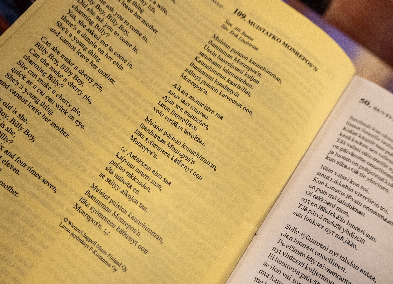 Menomatkalla laivaemäntä kävi tarkkaan läpi Viipuriin saapumisen yksityiskohdat, jakoi kahtena kappaleena täytettävät maahantulolomakkeet ja opasti tarvittaessa niiden täyttämisessä. Tarjolla oli myös yhteislaulua, johon mekin osallistuimme hetken paluumatkalla. Menomatkalla maisemat veivät mennessään. Myös bingoa olisi päässyt pelaamaan ja hyvällä tuurilla olisi voinut voittaa uuden miniristeilyn Lappeenrannasta Viipuriin: olisi siis sittenkin kannattanut osallistua!