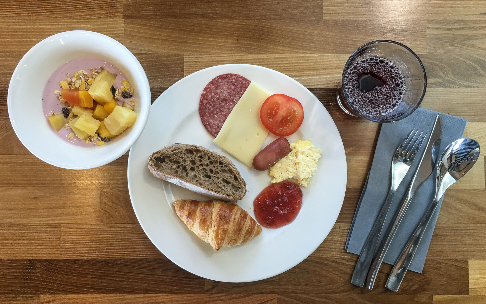Aamiaisesta olen Martinan kanssa samaa mieltä, ei mitään ihan erityistä, mutta kuitenkin kaikkea ihan riittävästi siististi ja raikkaasti esillä. Appelsiinimehua tosin jäin kaipaamaan. Muumivieraille ja muuten vaan makeaan viehättyneille matkailijoille tarjolla oli vielä purkillinen kauniin värikkäitä marmeladejakin “jälkiruuaksi”.