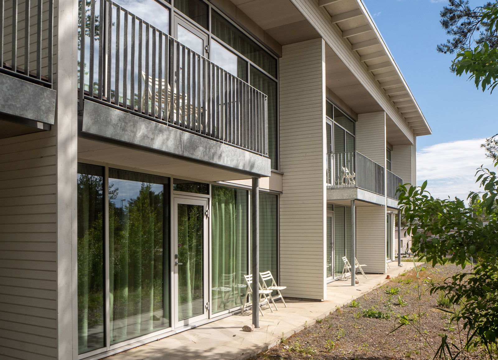 Hotellihuoneet on sijoitettu kolmeen pieneen luhtitaloon ja niiden lisäksi alueella on 18 vähän isompaa huoneistoa.