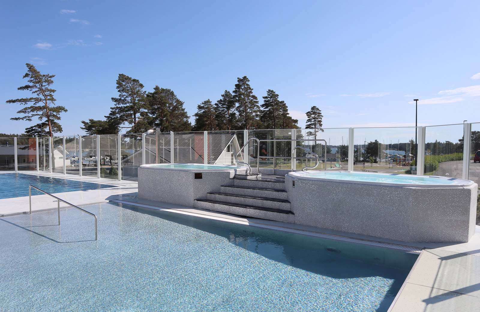 Yksi Kasnäsin alueen vetonauloja on kylpylä, jossa on altaita niin kuntouimareille kuin lapsille. Kylpylään myydään myös päivälippuja, eli se on myös veneilijöiden, Caravan-alueella yöpyvien ja ihan vaan päiväkävijöiden käytössä. Tänä kesänä kylpylän yhteyteen on tätä kirjoitettaessa jo avattu myös uusi ulkouima-allas. Pääsimme näkemään uuden altaan juuri käynnissä olevia viimeistelytöitä ja keskustelemaan siitä hetken hotellipäällikkö Tanja Liljeqvistin kanssa. Ulkouima-allas on osaltaan ratkaisu näitäkin rantoja jo monena kesänä vaivanneeseen sinileväongelmaan: hienohiekkainen hiekkaranta ei houkuttele, jos veteen ei voi mennä. Kurja juttu, sinilevä, mutta Kasnäsin kävijöille ulkouima-allas tarjoaa nyt levättömän vaihtoehdon – tai muuten vaan upean vaihtoehdon hiekkarannalle. Aamupäivä rannalla ja iltapäivä altaalla tai toisin päin?