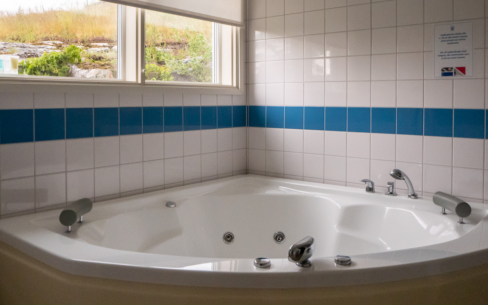 Kasnäsin hotelli koostuu kahdeksasta rivitalosta, joissa on yhteensä nelisenkymmentä huonetta ja kaksi sviittiä. Kesäkuun vielä alkupuolella saimme käyttöömme lähellä rantaa olevan sviitin, jolla valoisan makuuhuoneen lisäksi oli olohuone, minikeittiö, parvi, oma sauna ja iso kylpyhuone porealtaalla! Tänne ei olisi pitänyt tulla vaan yhdeksi yöksi vaan todellakin olemaan! Nörtit meissä taisivat kuitenkin huomata ennen poreallasta hyvin toimivan wifin, vaikkei sillä suomalaiselle Suomessa niin väliä olekaan ja autolla liikkuessa auton sai kätevästi oven eteen. Tosin sen olisi voinut jättää vähän kauemmaskin, niin illuusio yöstä rantahiekalla olisi ollut täydellisempi.