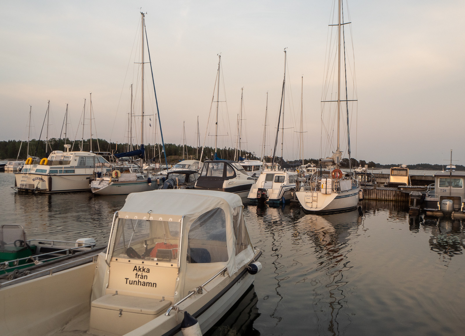 Entisinä purjehtijoina vietimme illan pitkälti satamassa ja rannalla. Lapsiperheet olisivat ehkä viettäneet ajan kylpylässä tai minigolfia pelaten, mutta meille riitti merinäkymä. Rantanurmella tepasteli iloksemme jopa meriharakka! Välillä piti käydä katsomassa uutiset, tekemässä vähän muistiinpanoja päivän reissun jäljiltä ja siirtämässä valokuvia kovalevylle, mutta auringonlaskun aikaan palasimme rannalle. Kesäilta ja kesäyö meren äärellä ovat kyllä parhaita asioita Suomen kesässä.