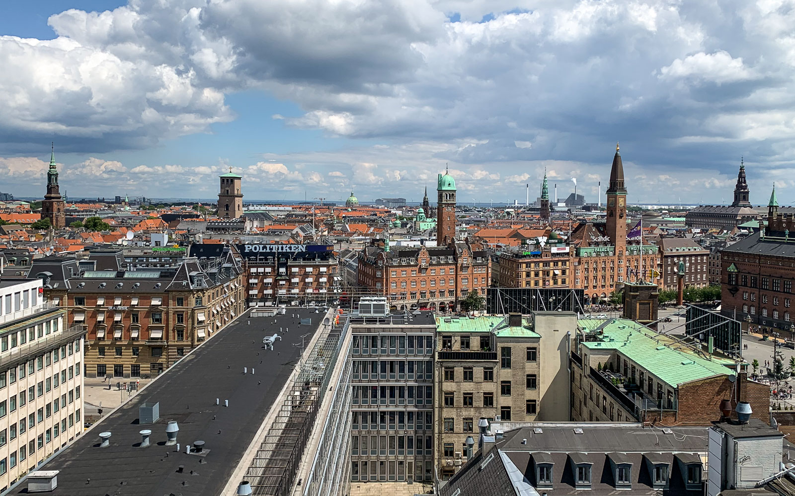 Hylkäsimme kuitenkin Strøgetin melko pian, sillä olimme shoppailleet jo edellisenä päivänä ihan riittämiin. Uutena kohteena (2017) poikkesimme Trio-ravintolassa Axel Towers -rakennuskompleksin ylimmässä kerroksessa, ihan vaan näköalan takia! Trio taitaa tätä nykyä olla yksi Kööpenhaminan parhaista näköalaravintoloista ja Axel Towersin arkkitehtuurikin kestää kyllä lähemmänkin tarkastelun.