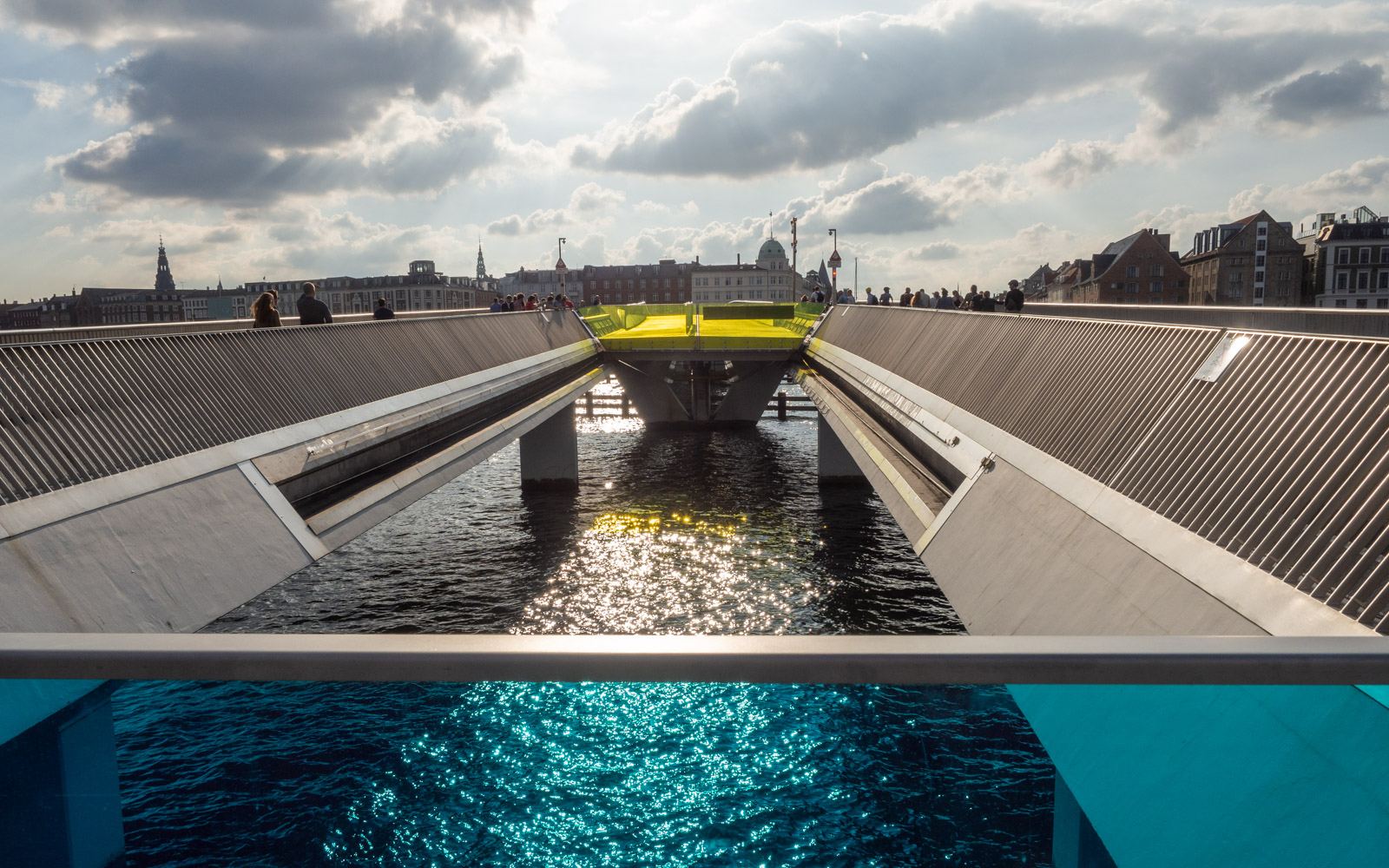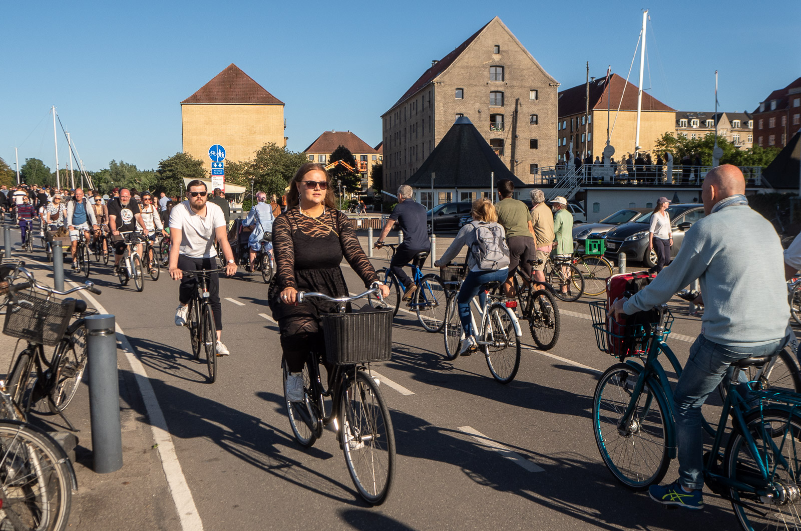 Edellisen kerran kävimme Kööpenhaminassa 2013. Sen jälkeen (2016) Nyhavnin ja Christianshavnin välille on avattu uusi kevyen liikenteen silta: Innerhavsbroen. Silta on avattava ja osuimmekin heti ensimmäisenä iltana sillalle sen avautuessa. Jos pyöriä on Nyhavnissa ja sillalla muutenkin paljon, niin voit kuvitella, että kun silta on hetken poikki ja sen kummallekin laidalle kertyy satoja pyöräilijöitä, on liikkeellelähdössä säpinää! Mutta hyvin mekin mukaan mahduimme. Tanskalaiset, myös tanskalaiset pyöräilijät, ovat ystävällisiä ja vain kerran jossain risteyksessä taisimme saada kommentin, että tämä ei taida olla ihan hyvä kohta harjoitella – ystävällisesti sekin ilmaistuna.