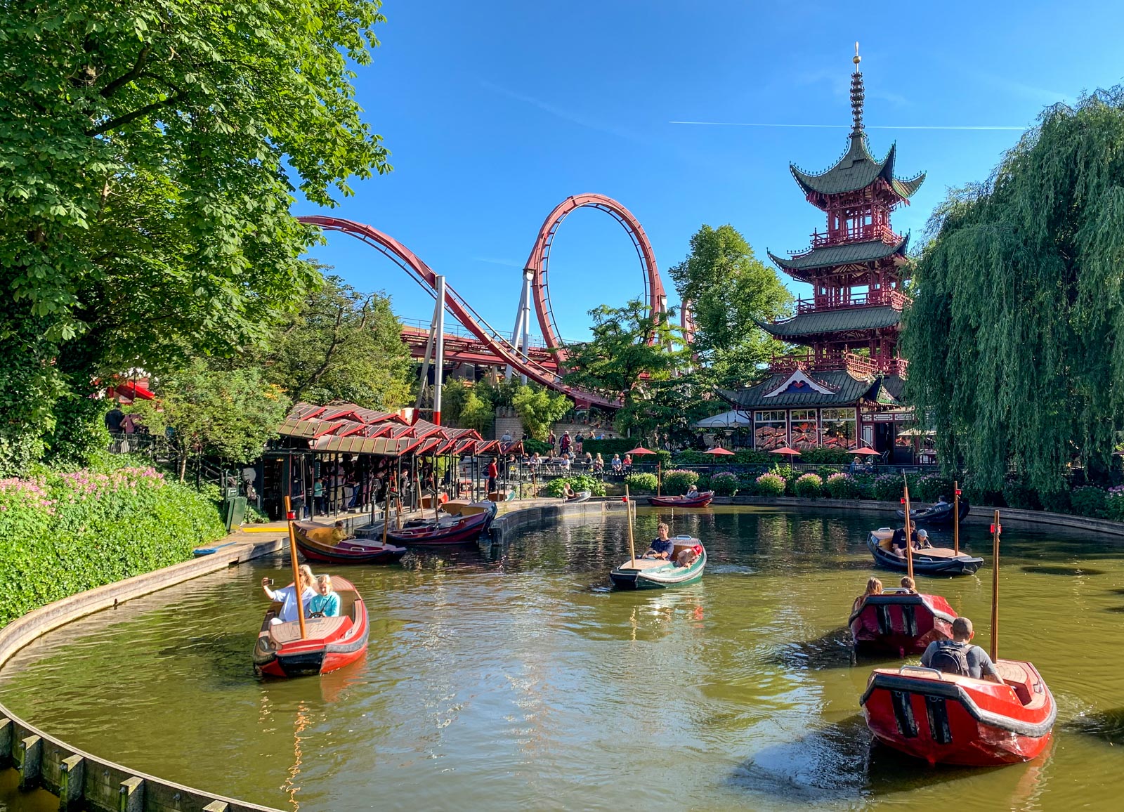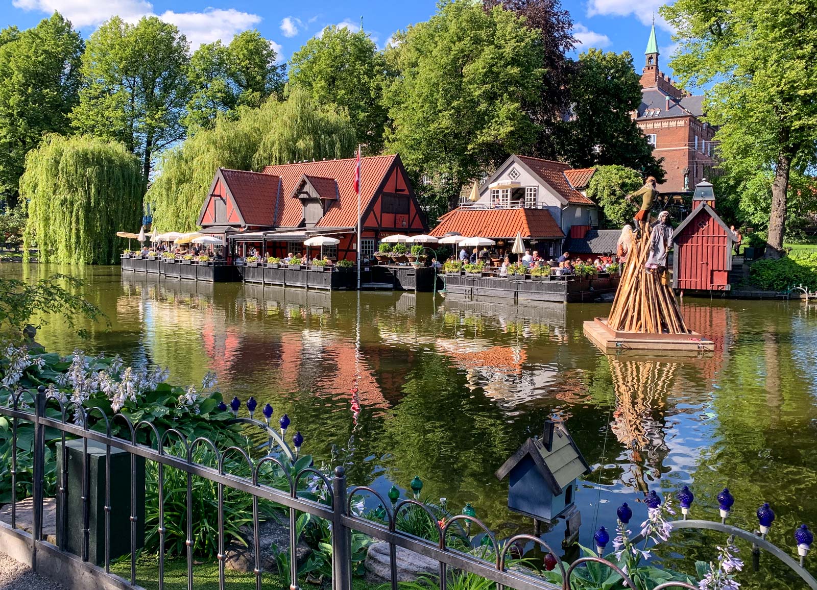 Tivoli on toinen kohde Pienen merenneidon ohella, jossa olemme monella Kööpenhaminan vierailullamme pistäytyneet. Joskus käymme jopa jossain laitteessa, mutta tällä kertaa kiertelimme aluetta enemmän sitä puistona ja puutarhana ihastellen. Sattuipa kohdalle täälläkin (kuten Bornholmin Svanekessa) joku torvisoittokuntatapahtuma ja pysähdyimme hetkeksi seuraamaan nuorten musisointia.