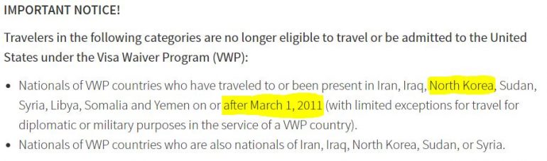 Viime vuoden passeja käsittelevässä jutussamme mainitsinkin jo, että meillä on voimassaoleva viisumi Yhdysvaltoihin, sillä Iranissa vierailtuamme emme enää ole nykysäädöksillä ESTA-kelpoisia. Äskettäin listalle maita, joissa vierailu tarkoittaa ESTA-kelpoisuuden menettämistä, lisättiin myös Pohjois-Korea.