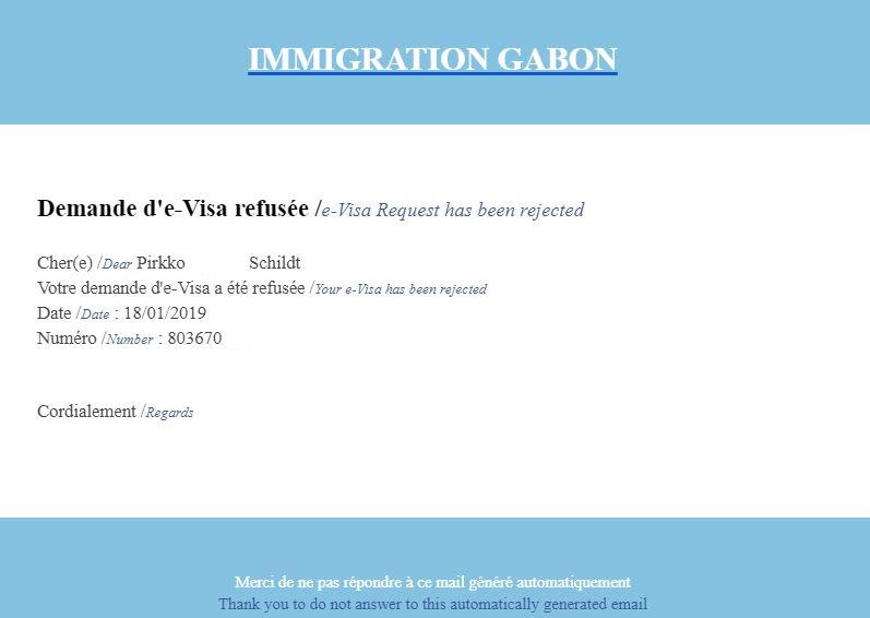 Gaboniin emme alkuvuodesta saaneet viisumia. Yllättäen Henleyn järjestelmä väittäisi, ettei suomalainen sinne viisumia tarvitsisikaan, mutta asiaa sen enemmän nyt tässä yhteydessä tutkimatta, en hetimmiten usko, että vieläkään pääsisin Gaboniin ilman viisumia.