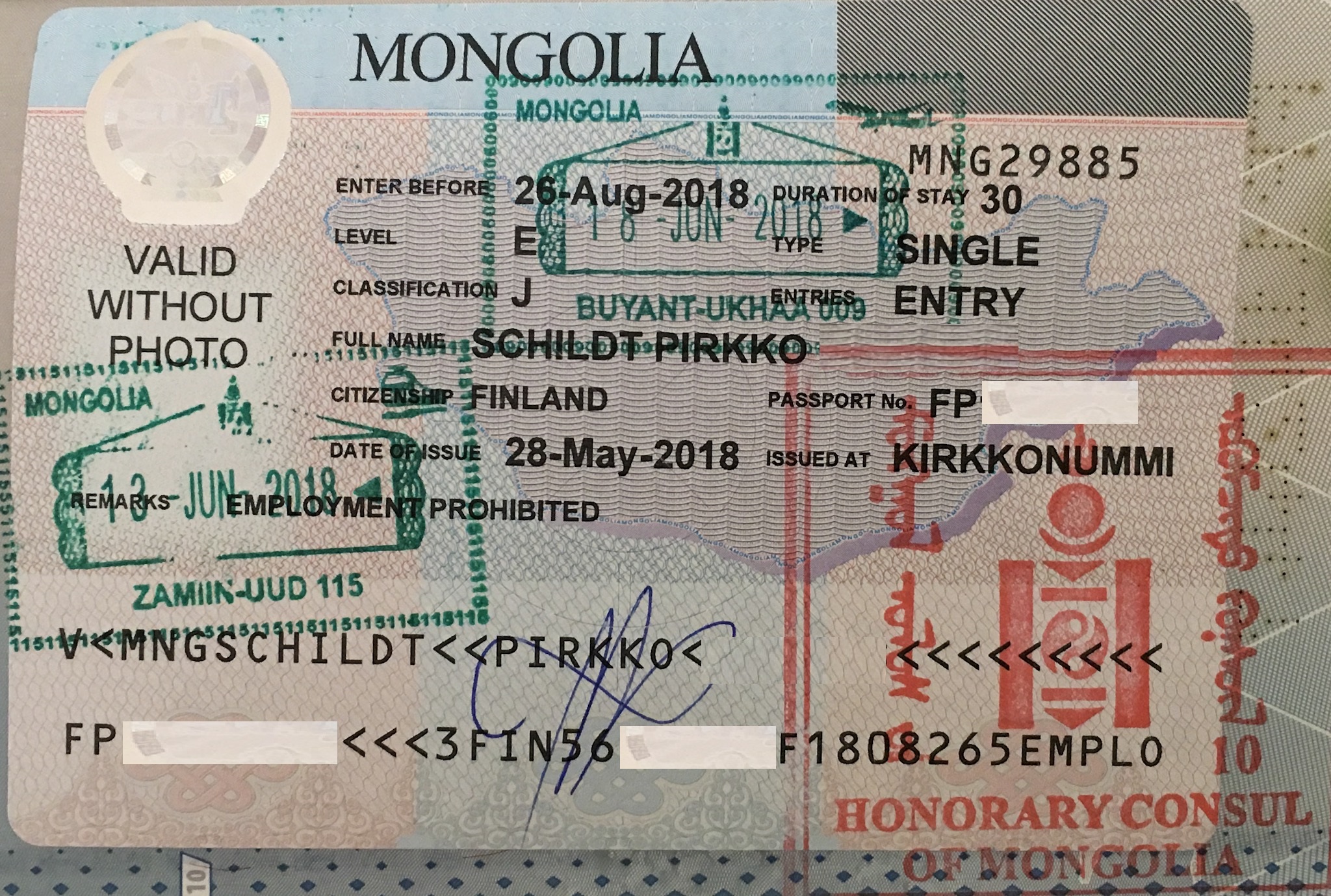Venäjän viisumi oli tosiaan vuosiviisumi – se maksoi 160€, ja Mongolian viisumi 75€.