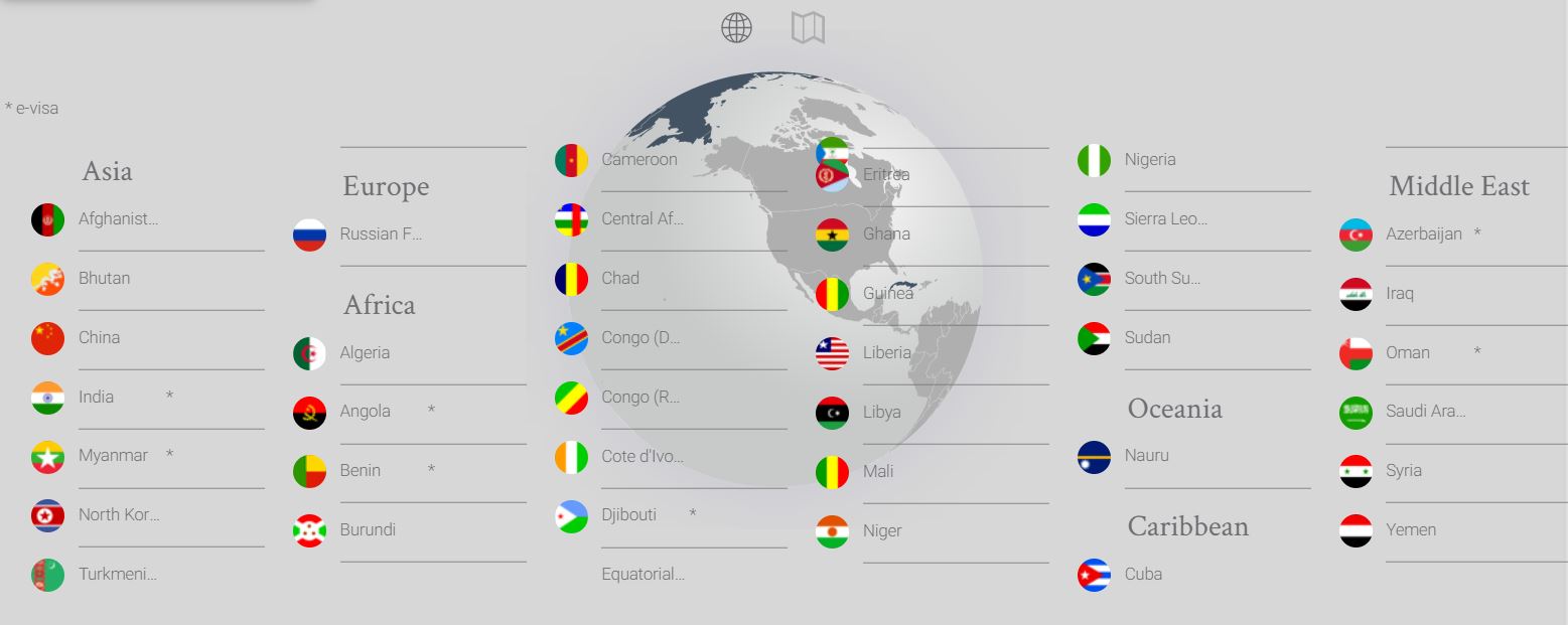 Koko lista on nyt tämän näköinen: Iran, Irak, Jemen, Libya, Pohjois-Korea, Somalia, Sudan ja Syyria.