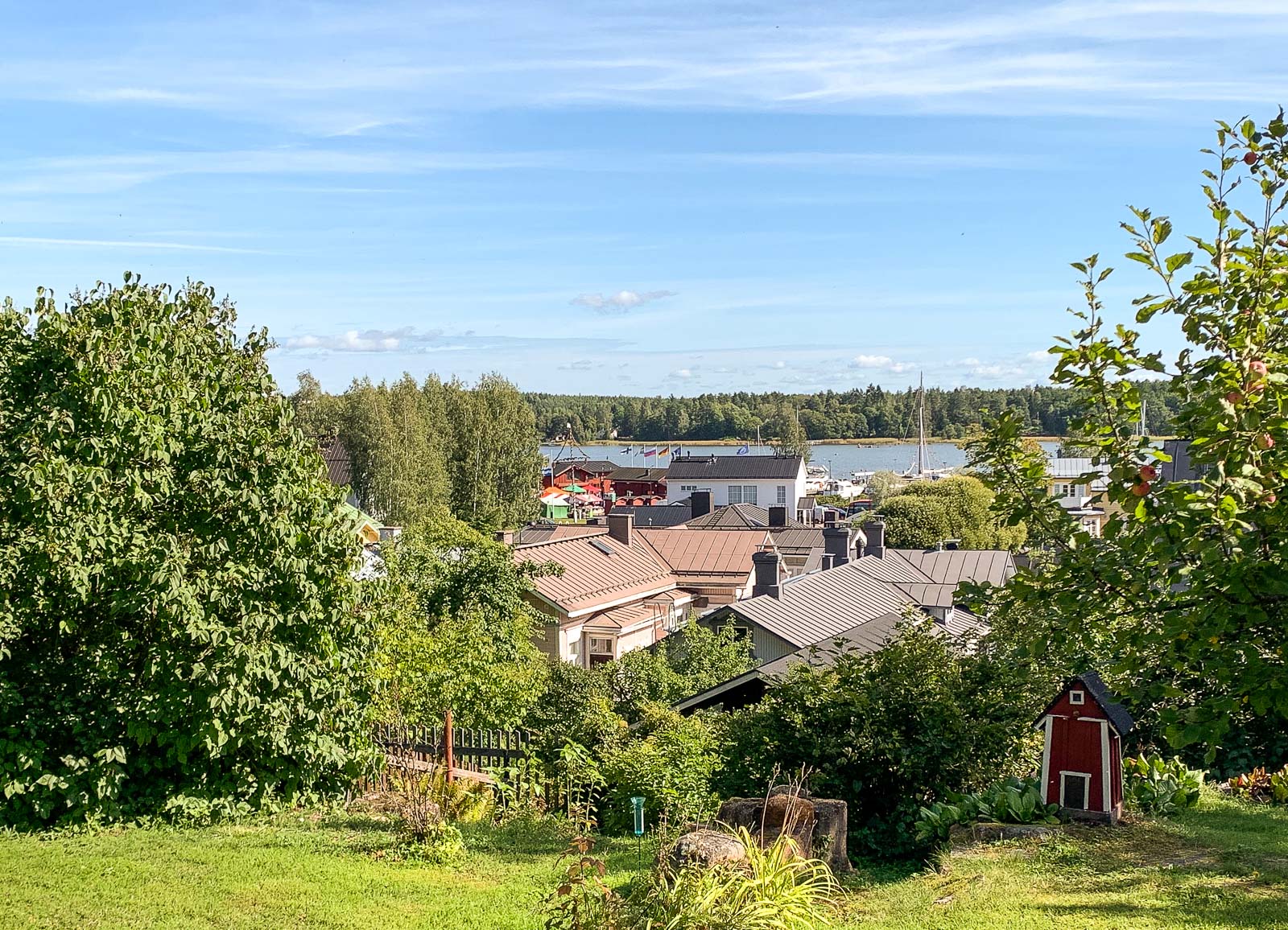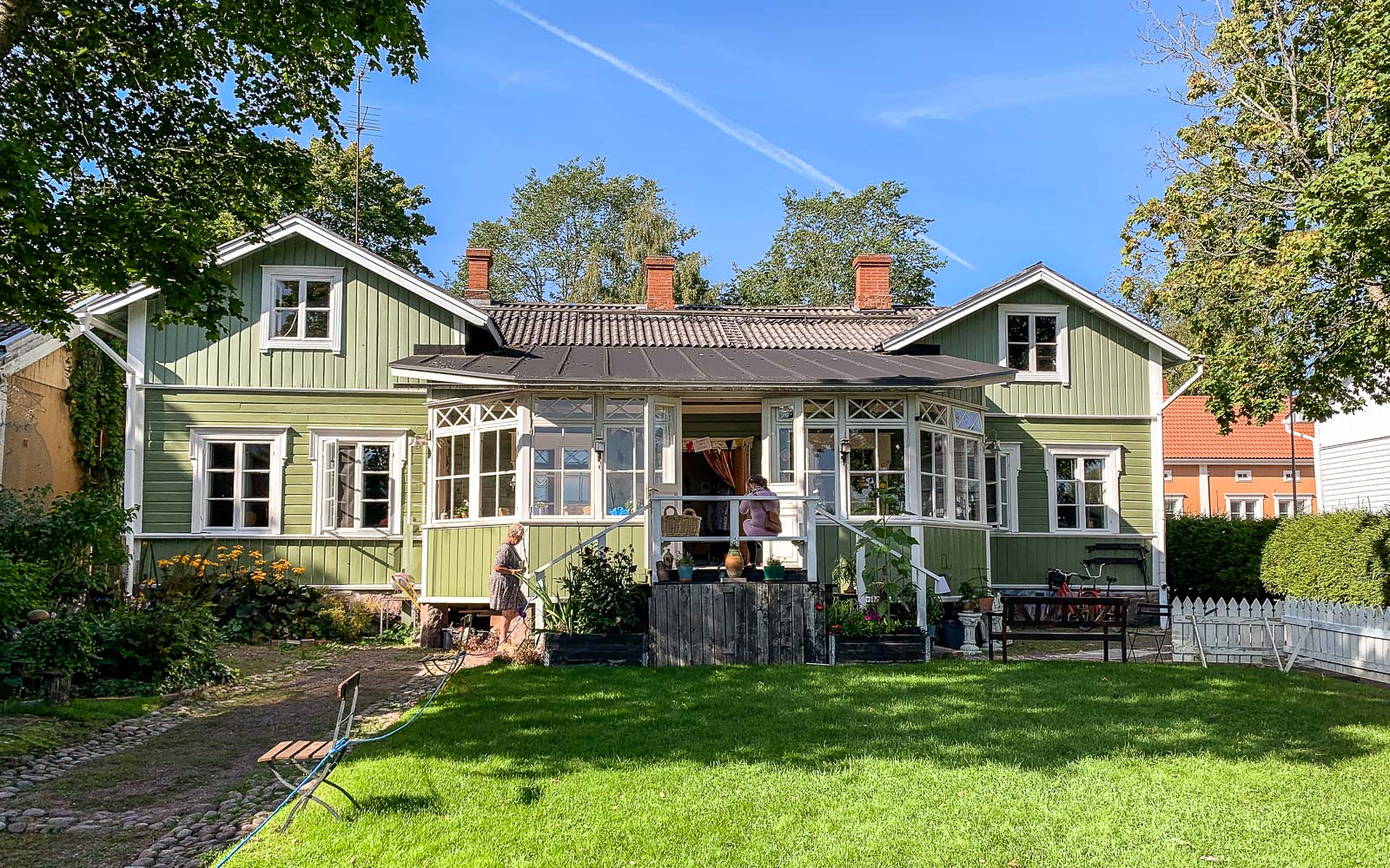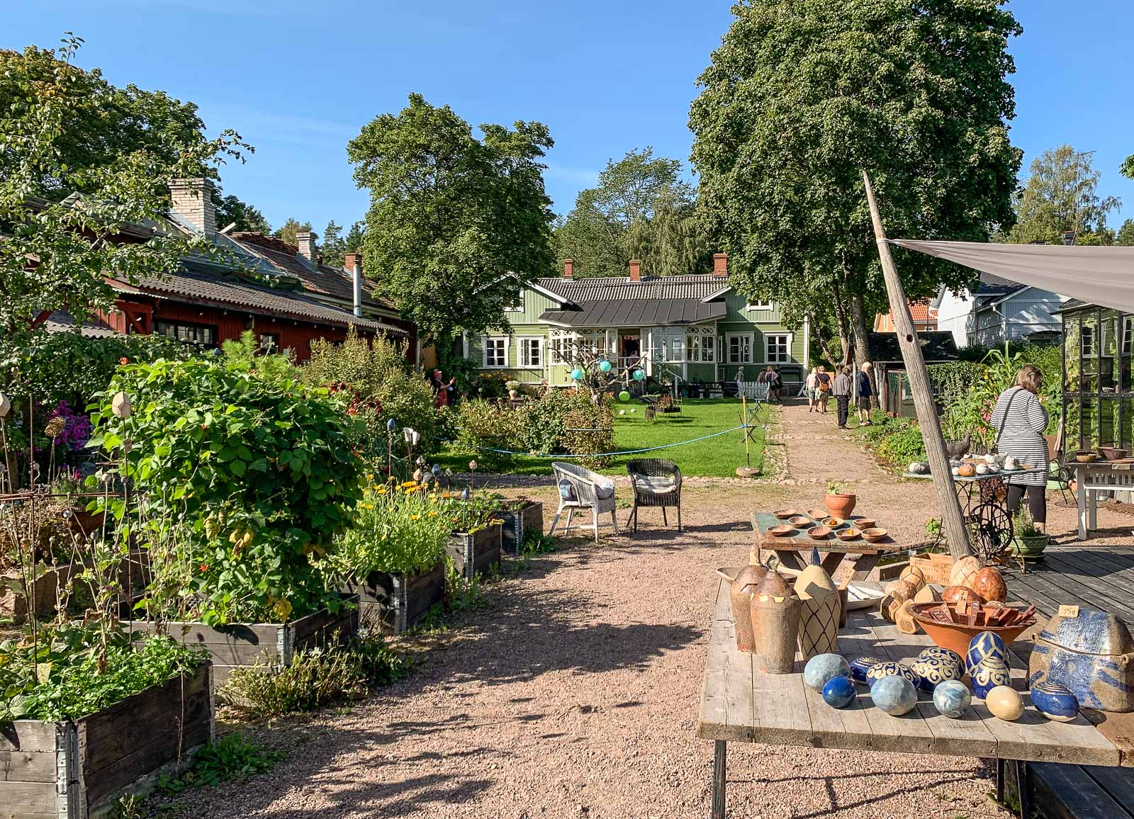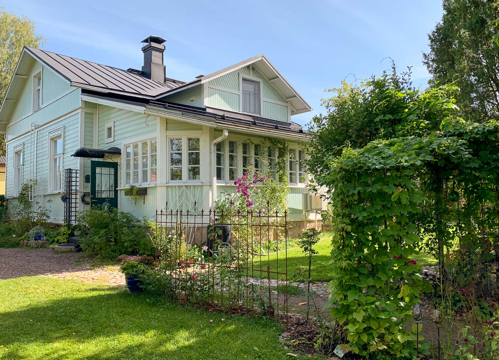 Pitkänpöydän talo Mariankadulla oli yksi ensimmäisiä taloja, joissa poikkesimme. Talo ja sen sisustus ei erityisesti innostanut, mutta sen lähes Loviisanlahdelle asti ulottuva puutarha! Puutarhaan reunustavat monet piharakennukset saunasta ja kasvihuoneesta kanalaan ja talon emännän keramiikkatyöpajaan. Mahtavan pihan rinnalla onkin vaikea keskittyä taloon ja sen yksityiskohtiin – ainakaan aurinkoisena kesäpäivänä.