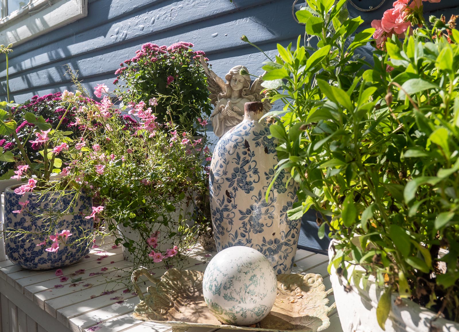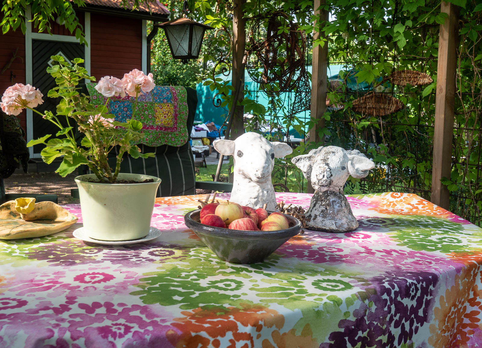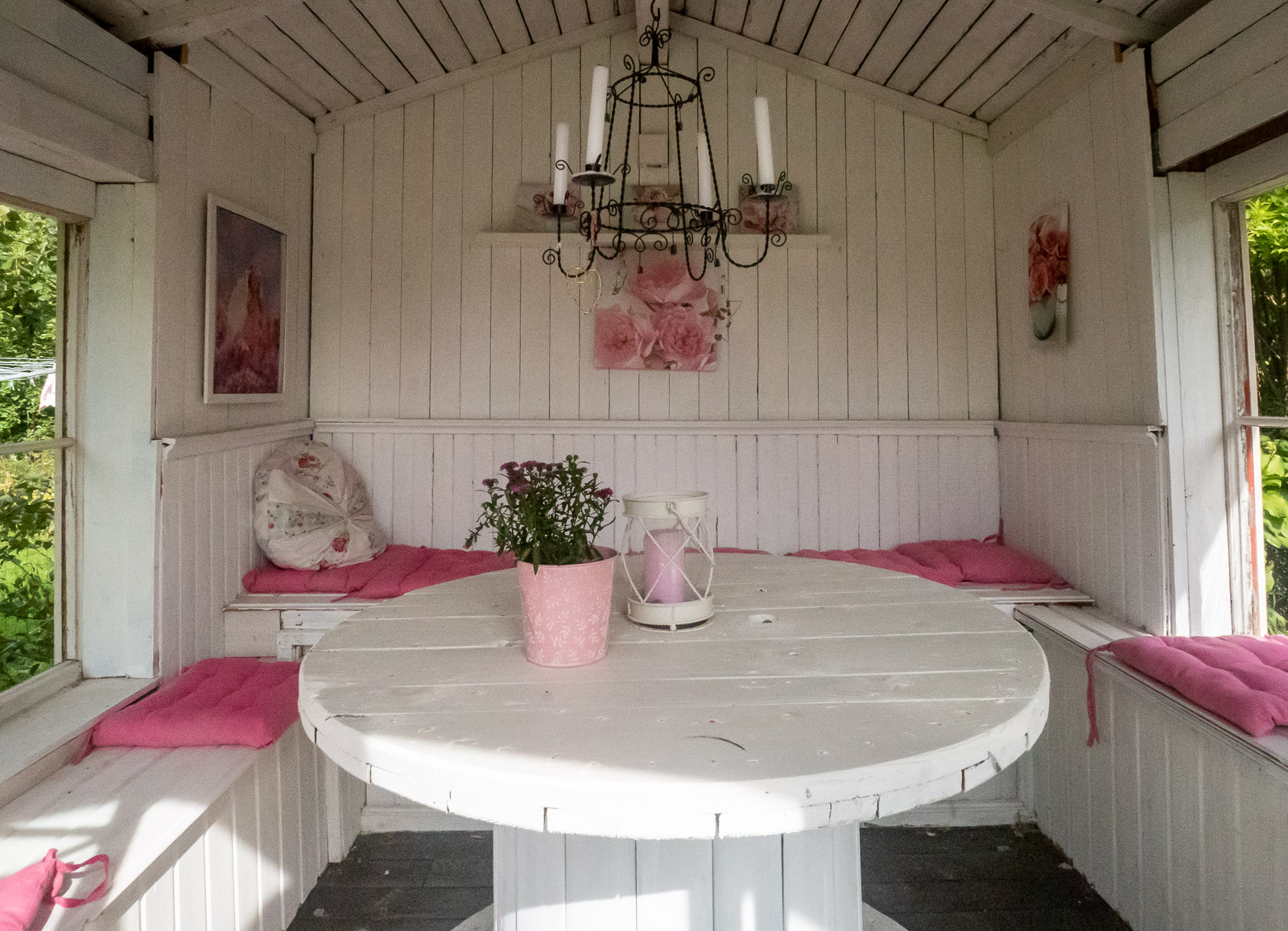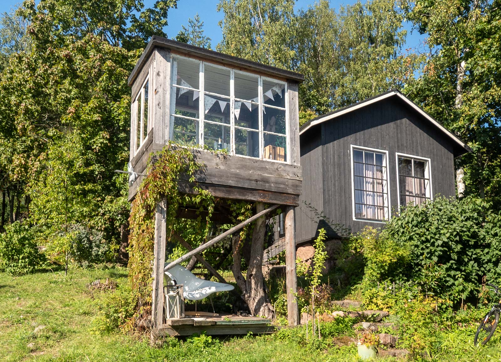 Pitkänpöydän talo Mariankadulla oli yksi ensimmäisiä taloja, joissa poikkesimme. Talo ja sen sisustus ei erityisesti innostanut, mutta sen lähes Loviisanlahdelle asti ulottuva puutarha! Puutarhaan reunustavat monet piharakennukset saunasta ja kasvihuoneesta kanalaan ja talon emännän keramiikkatyöpajaan. Mahtavan pihan rinnalla onkin vaikea keskittyä taloon ja sen yksityiskohtiin – ainakaan aurinkoisena kesäpäivänä.