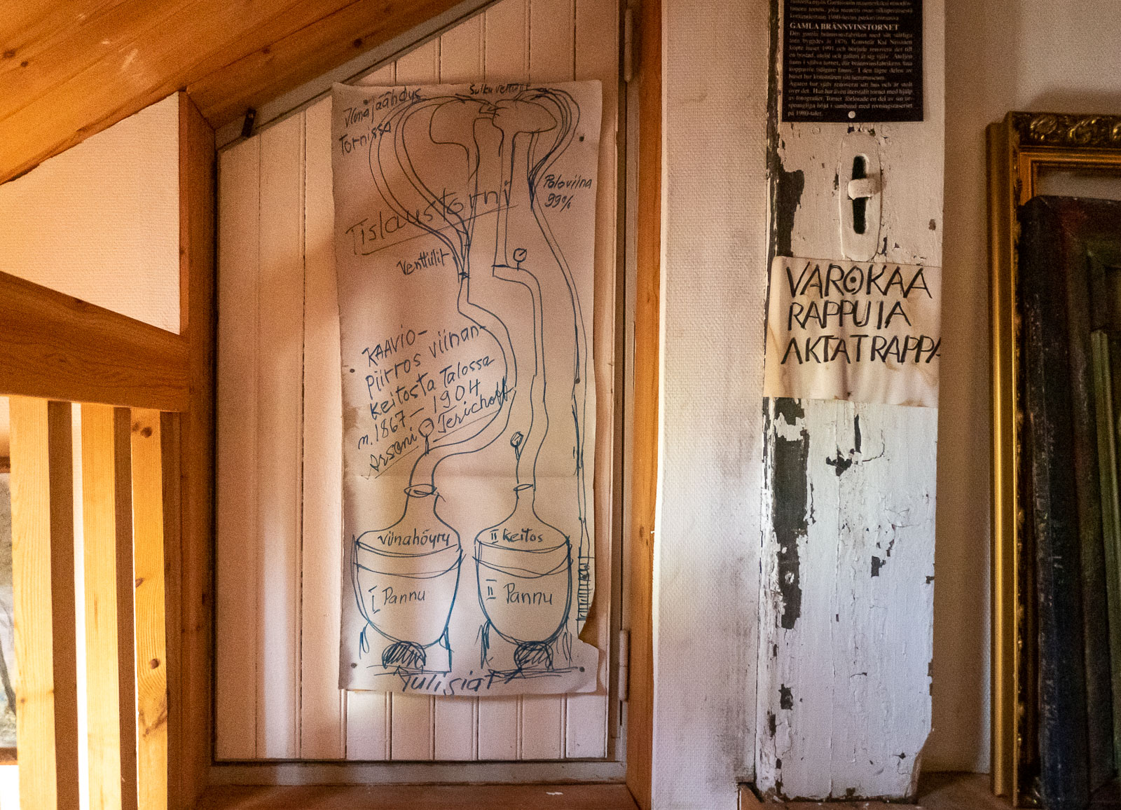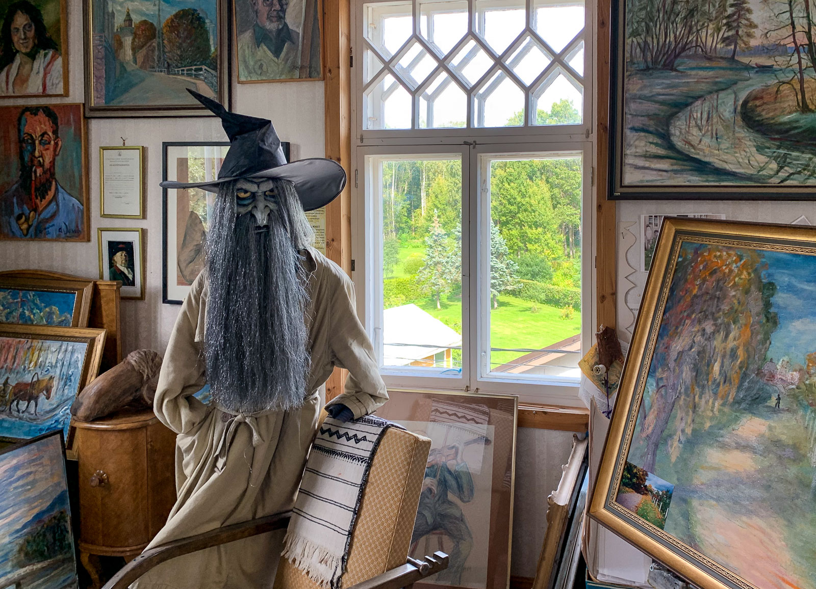 Olematta vanhojen talojen erityinen ystävä saatoin kuvitella itseni asumaan joissakin näkemissämme taloissa. En kuitenkaan Vanhassa viinatornissa! Tosin ehkä se näyttäytyisi talona hiukan toisenlaiselta, mutta nyt tiloja hallitsevat taiteilija Kai Nissisen työt saavat sen vaikuttamaan ateljeelta ja työtilalta, ei kodilta, jonne osaisin itseni kuvitella. Talon uudet asukkaat, taiteilijan lapsenlapsi perheineen, ovat kuulemma muuttamassa vielä tänä kesänä taloon ja he saavat varmasti lopulta siitä itsensä näköisen kodin.