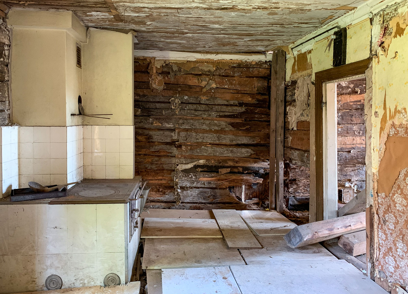 Yhden päivän aikana kävimme 17 talossa. 18 talossa, jos mukaan lasketaan “bonuskohde”, eli vanhan talon kehikko, jonka remontti oli vasta alkamassa. Tällaisiako kaikki näkemämme talot ovat olleet ennen remonttia?