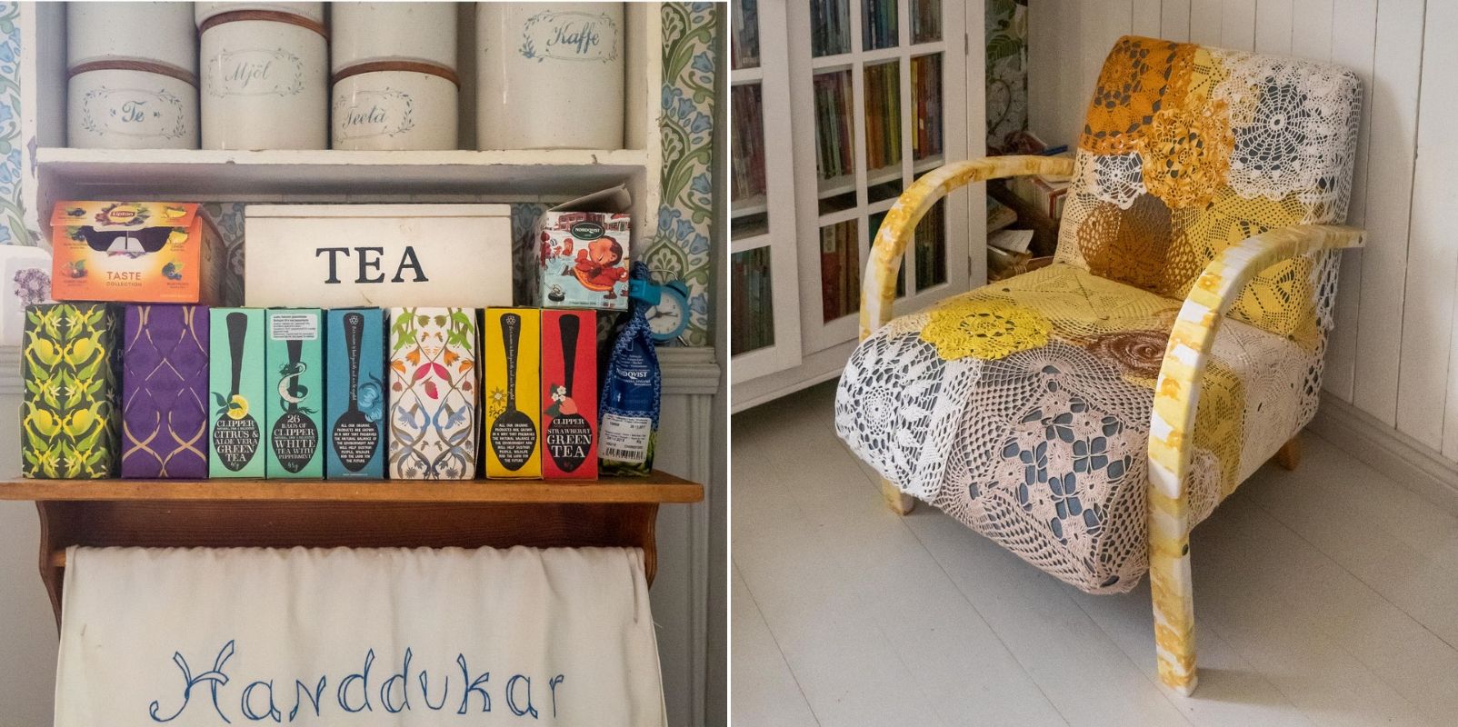 Jos pidät sisustamisesta, niin Loviisan Wanhat talot -tapahtuma tarjoaa runsaasti erilaisia ideoita – myös uudempiin taloihin ja asuntoihin. Me olemme laiskoja sisustajia ja olemme elämämme aikana yleensä sisustaneet kaikki asuntomme vaan kertaalleen sittemmin niitä juurikaan muuttamatta. Vuosien mittaan jonkun tuolin tai sohvan verhoilu on uusittava, ehkä koko sohvakin, mutta useimmiten olemme pyrkineet nämäkin kunnostustyöt hoitamaan mahdollisimman samaan tyyliin, jopa valiten ihan samanlaisen kankaan kuin uusittava kangas. Mutta jotain ihan pientä, kuten vaikka teepakettien kokoamisen yhteen keittiössämme jo olevaan avohyllyyn tai hauskan siivousrätin hankkimiseen voisin vaikka ryhtyäkin!