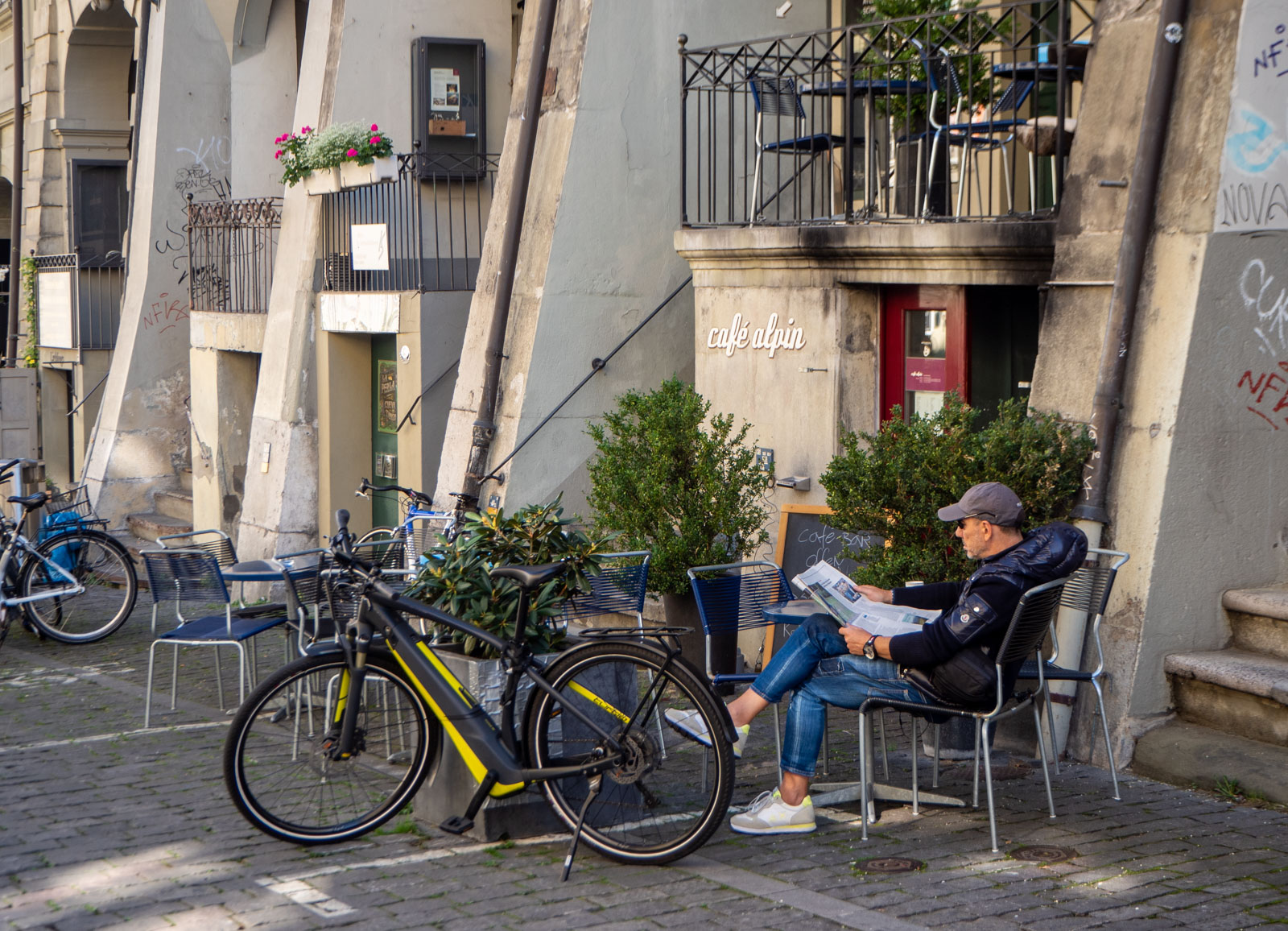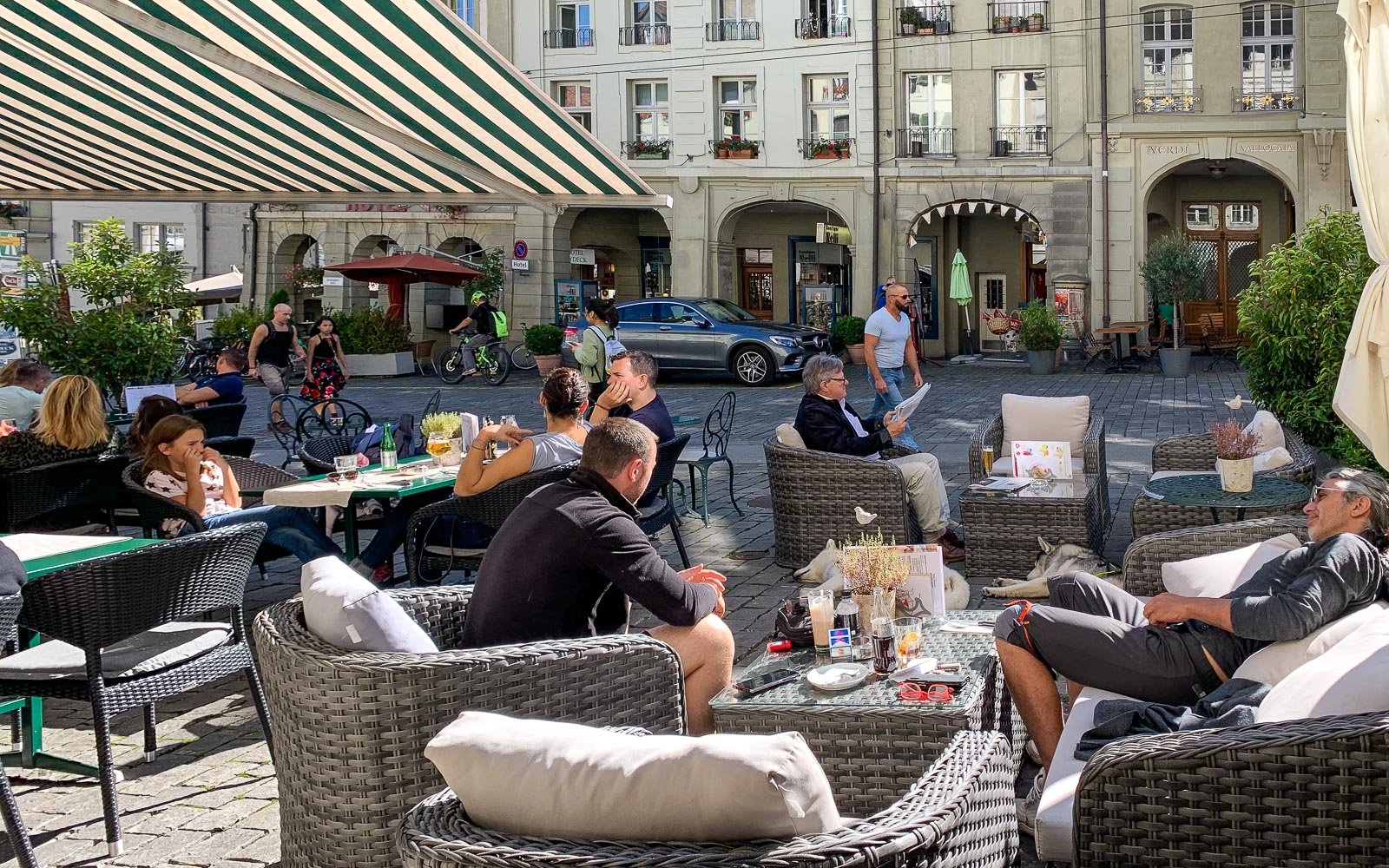 Sunnuntainen Kramgrasse, yksi vanhan kaupungin pääkaduista, oli ihanan hiljainen – muutamia ihmisiä ja silloin tällöin suuntaan tai toiseen kolkutteleva punainen raitiovaunu.
